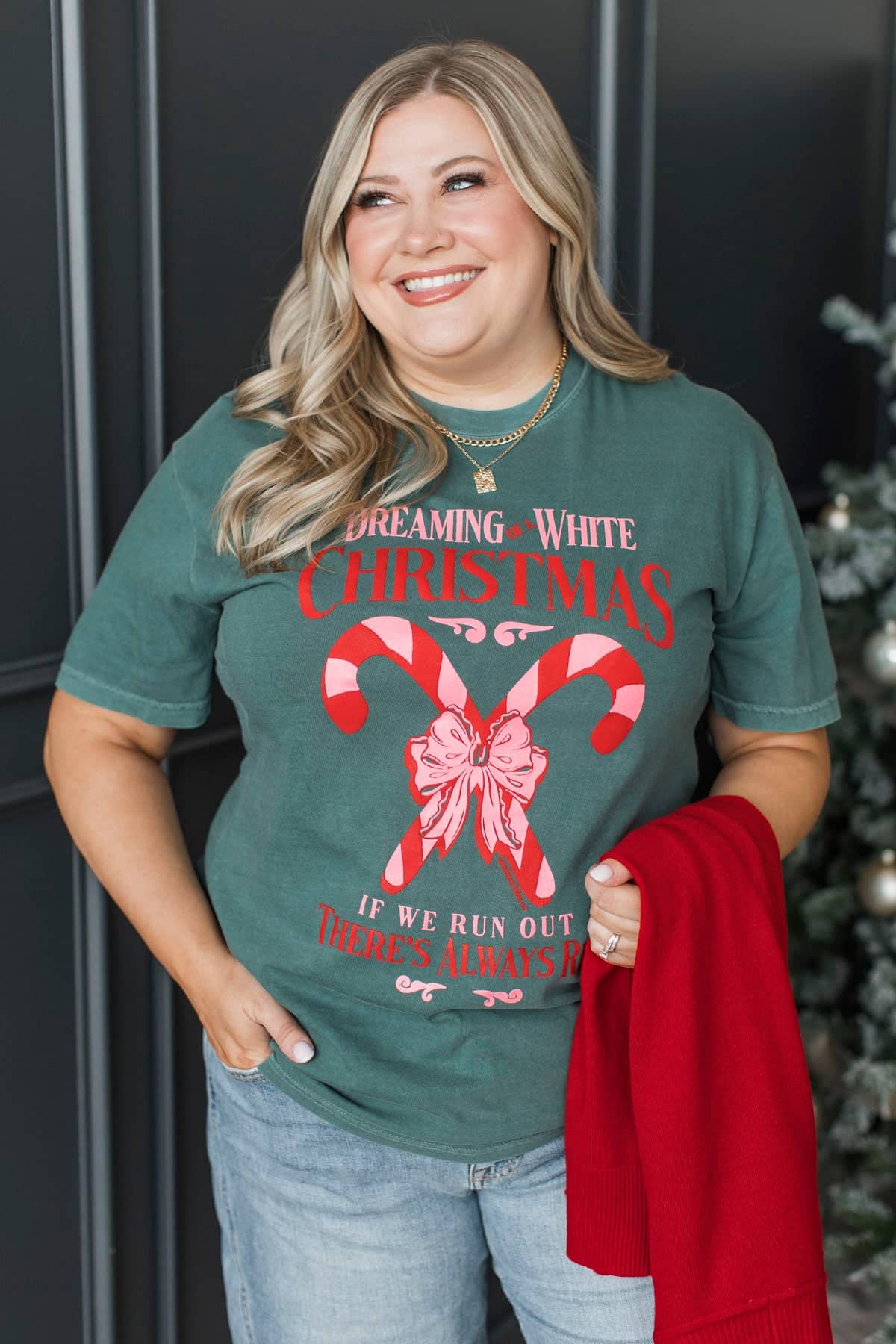 "Dreaming Of A White Christmas" Graphic Tee- Dark Green