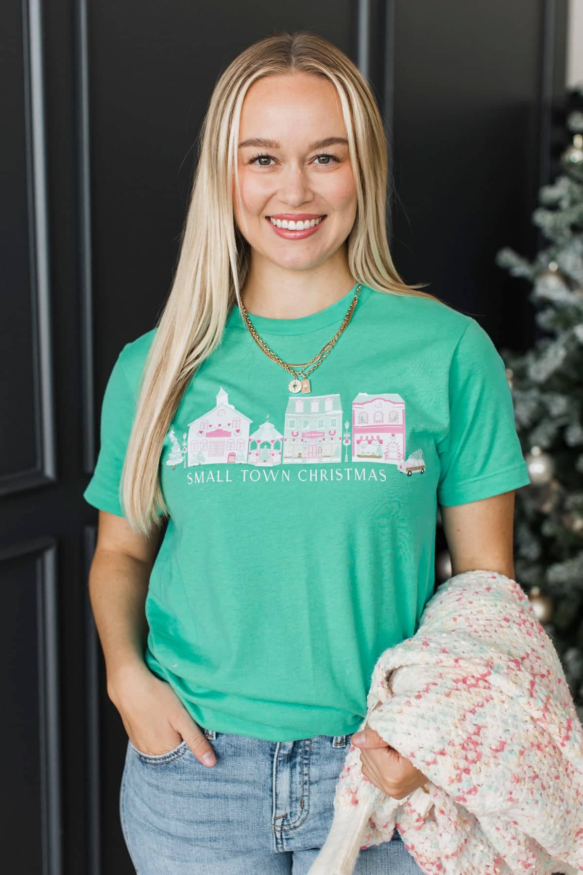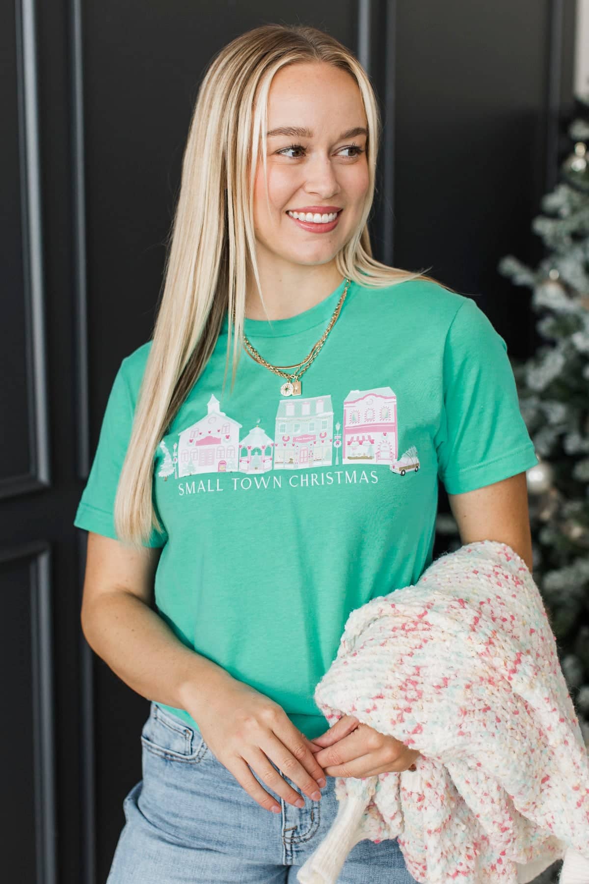 "Small Town Christmas" Graphic Tee- Bright Mint