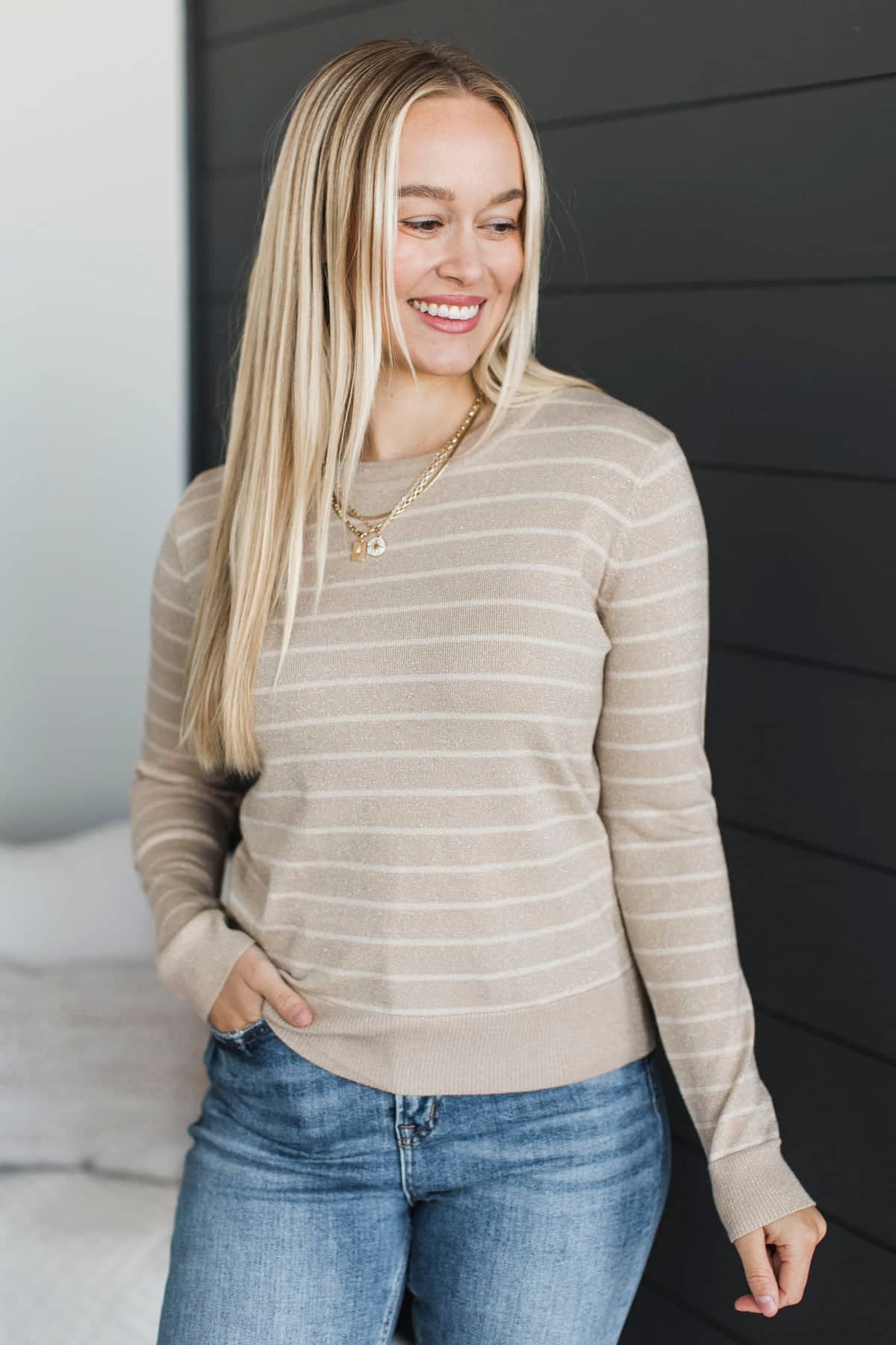 Beyond Grateful Stitch Stripe Sweater- Jade