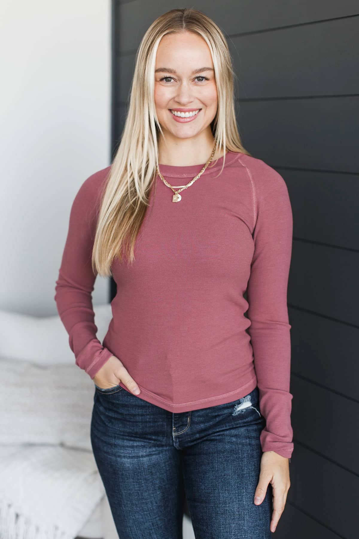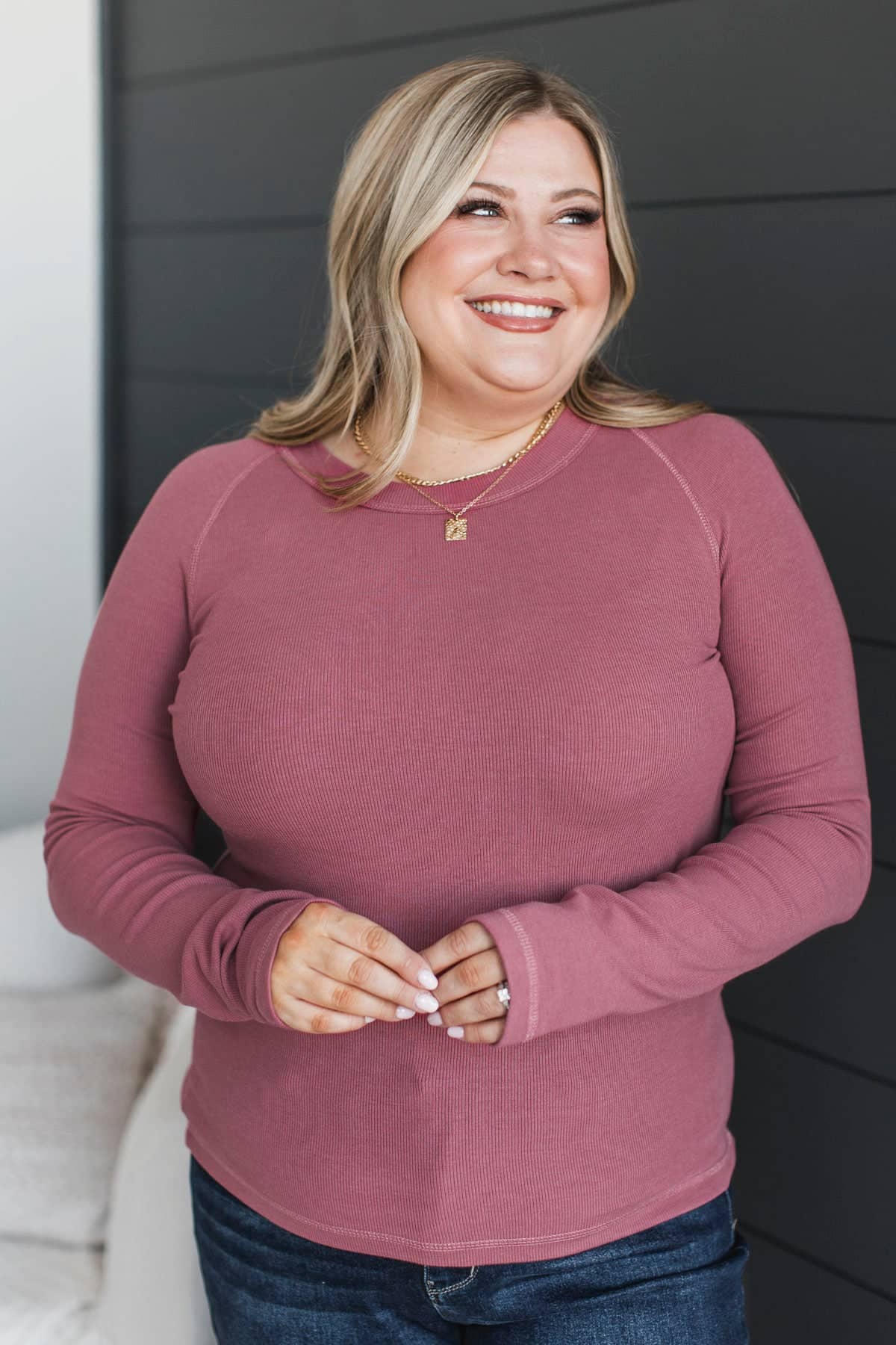 Looking Great Long Sleeve Ribbed Top- Marsala