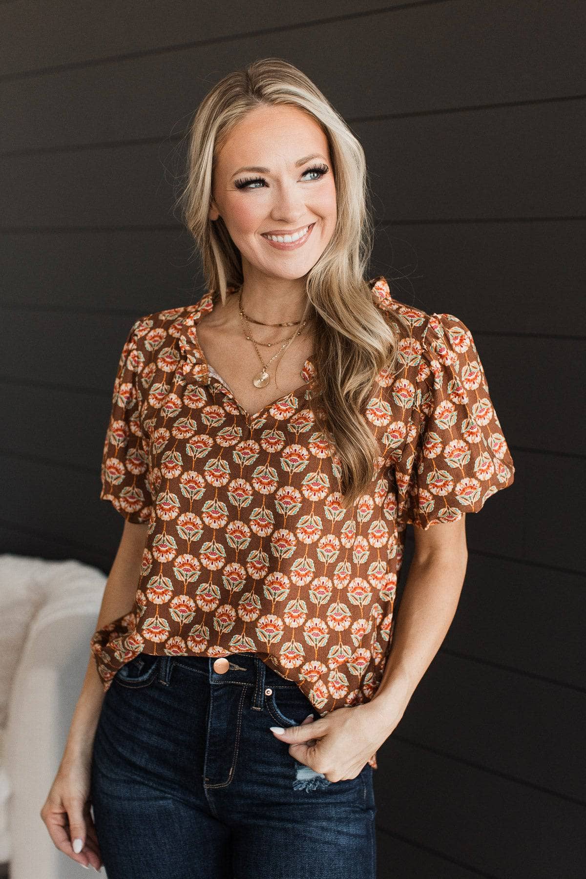 Finding Yourself Floral Babydoll Top- Dark Brown