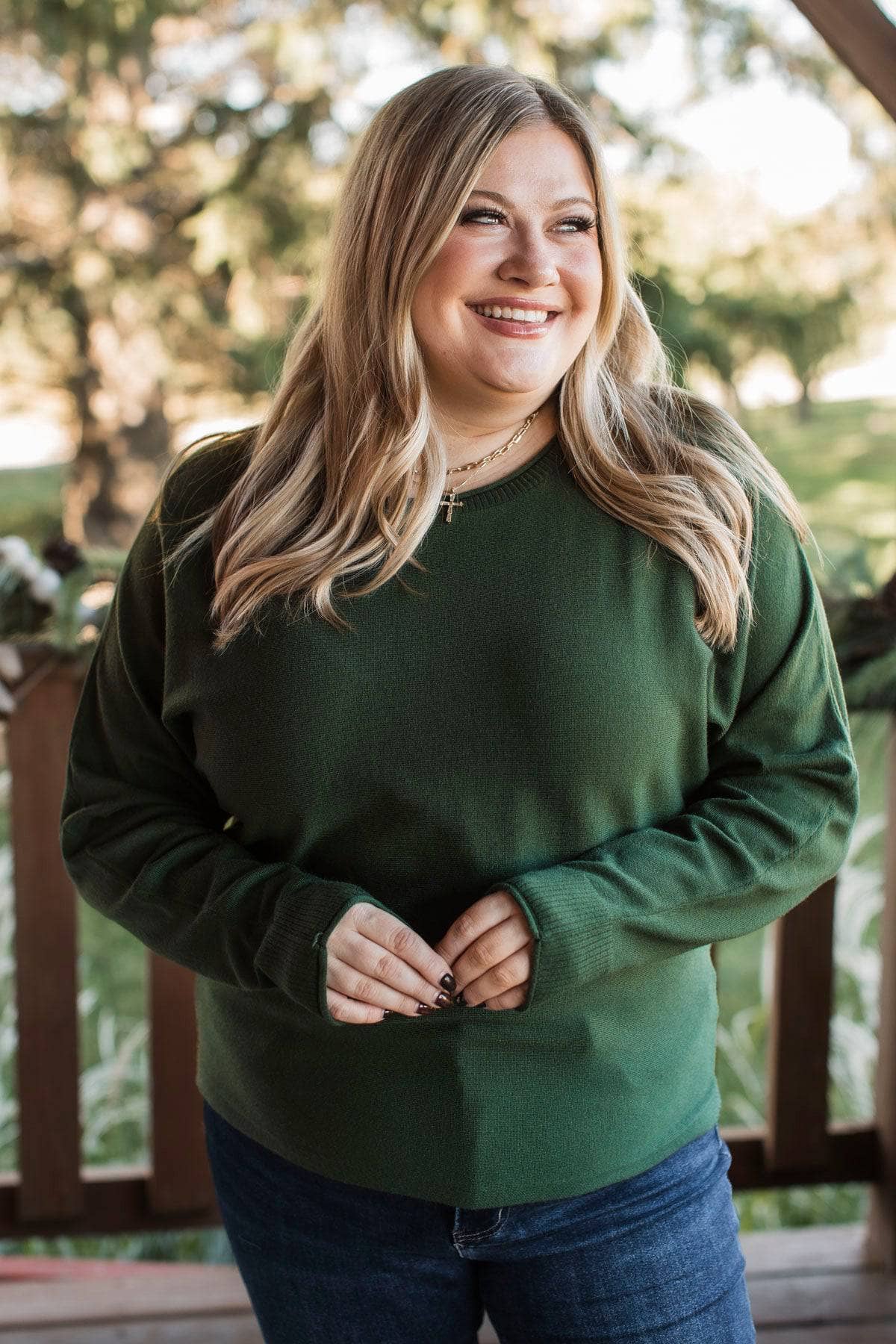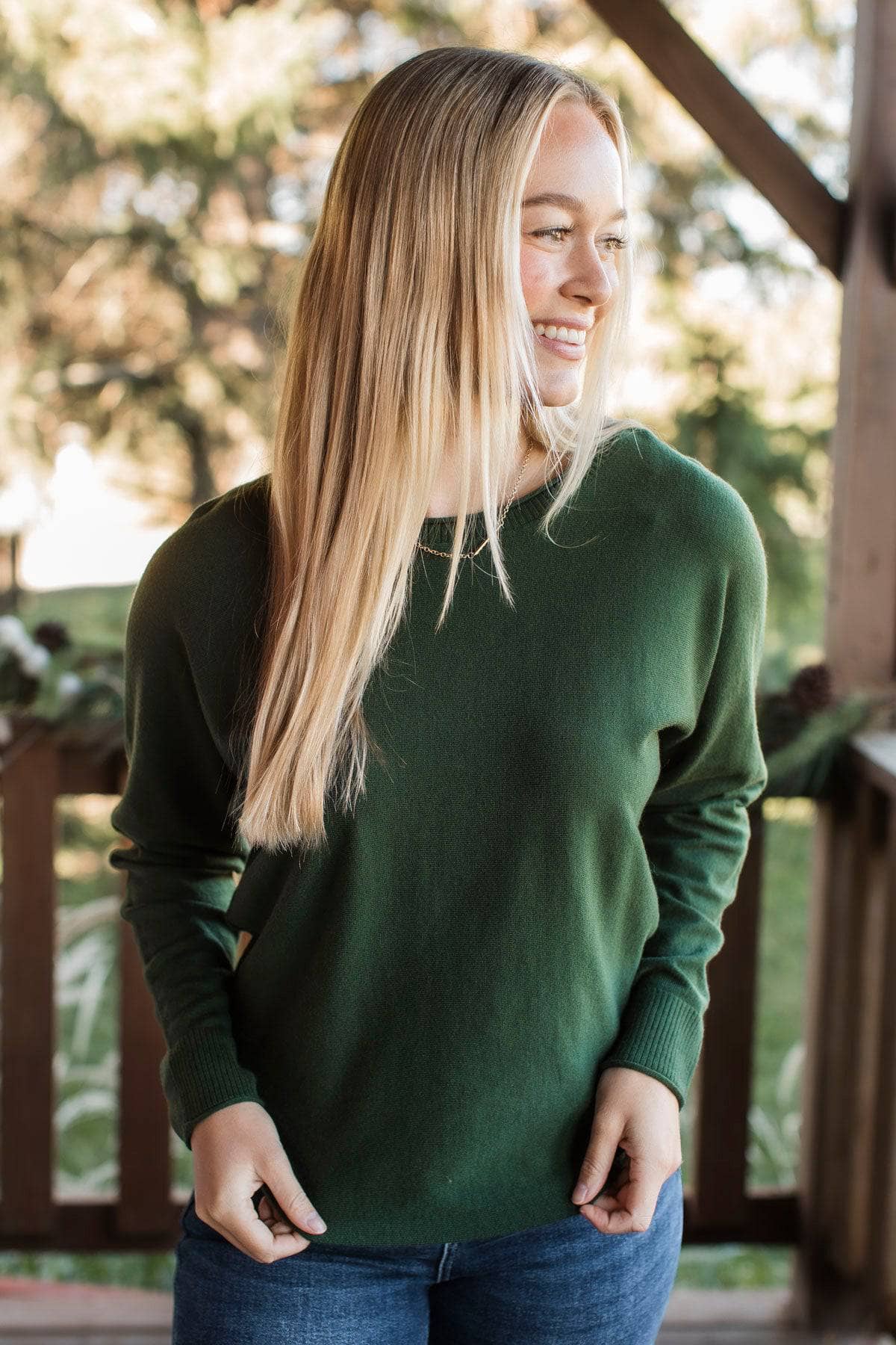 Don't Overthink It Knit Dolman Sweater- Forest Green