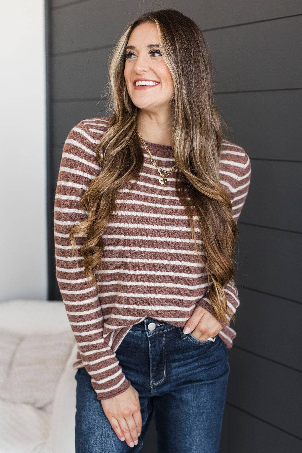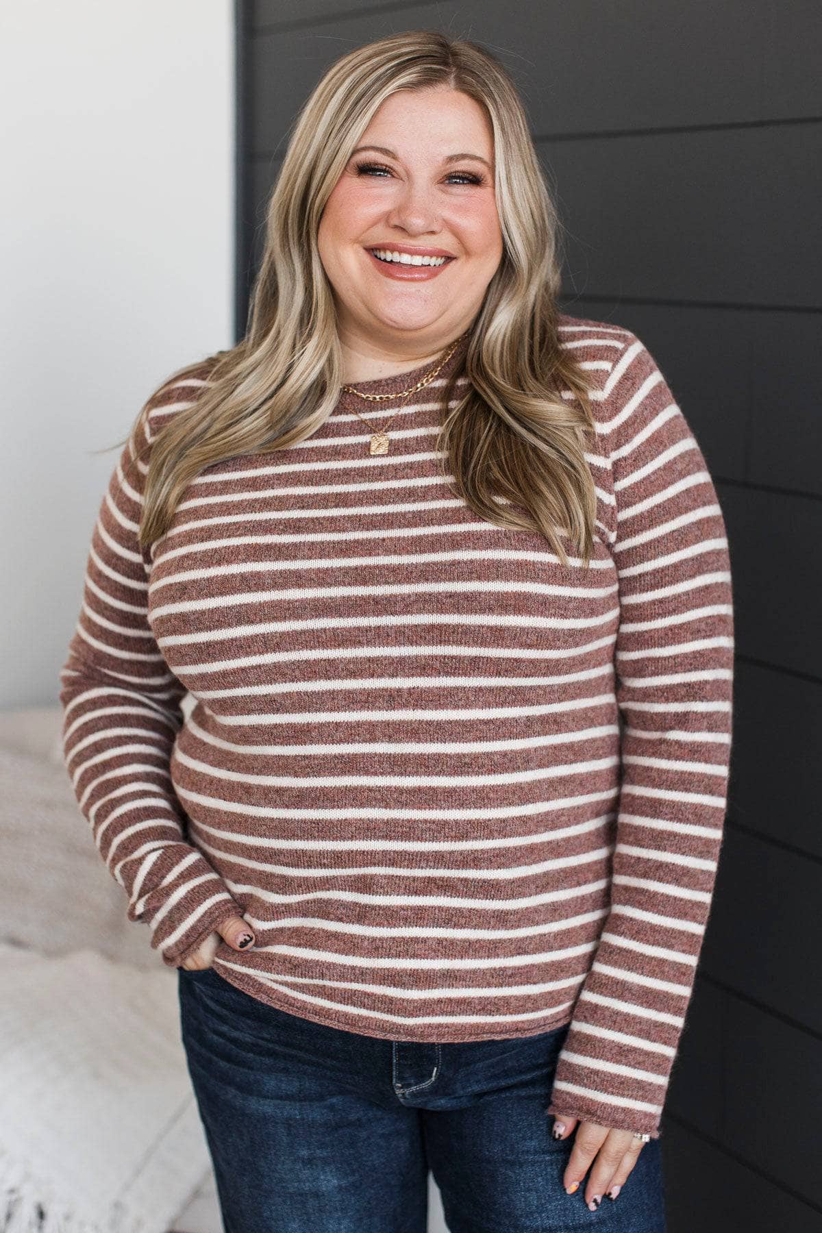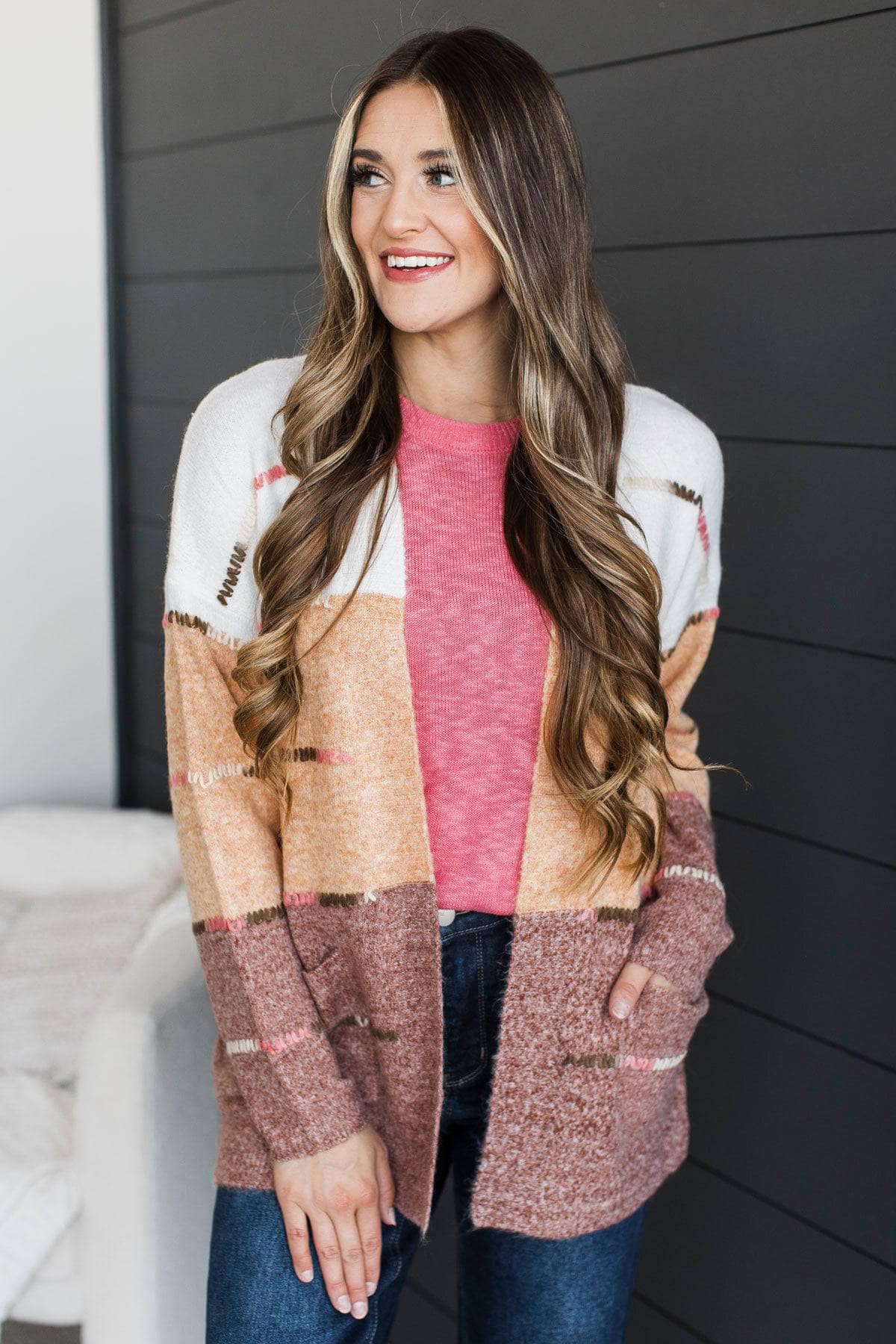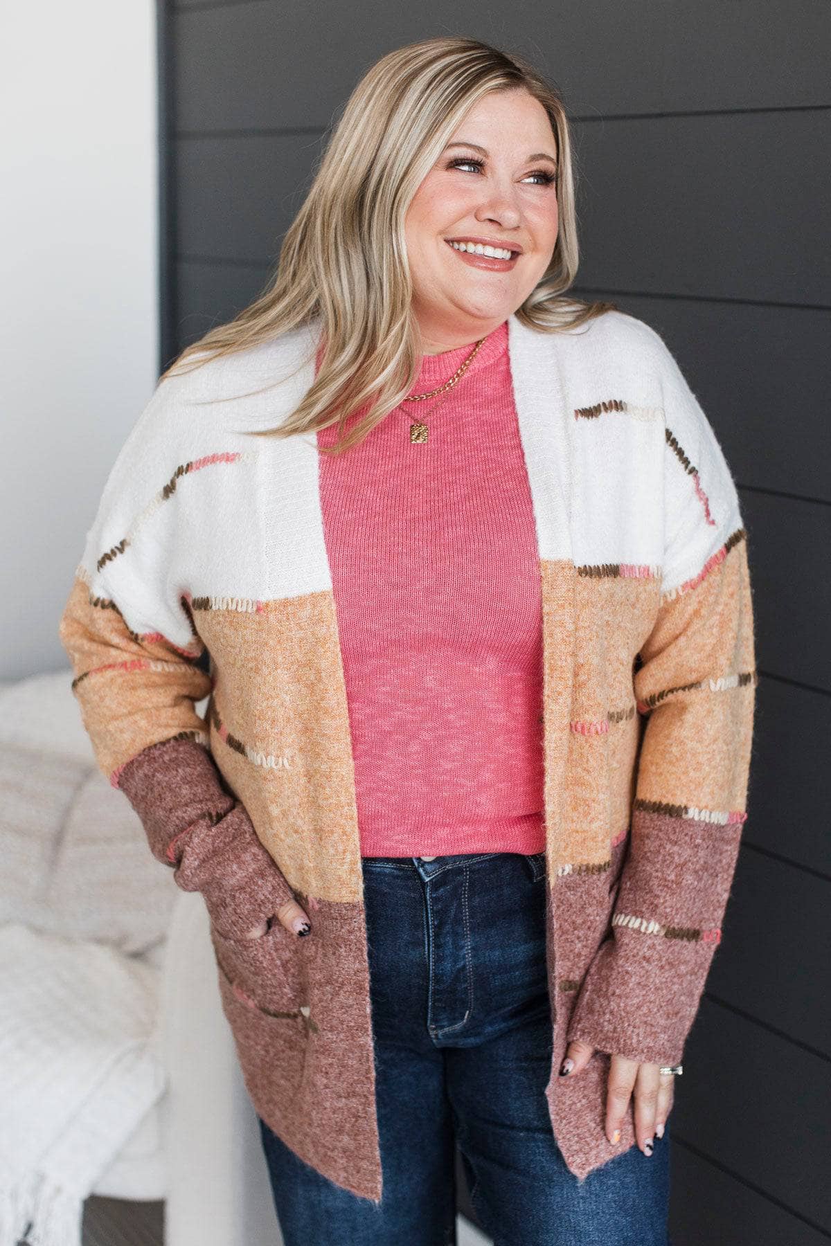 Scenic Routes Stitch Stripe Knit Cardigan- Ivory & Rust
