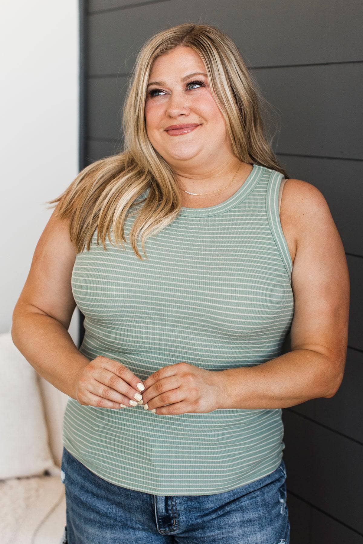 Thread & Supply On The Road Tank Top- Dusty Sage Stripe