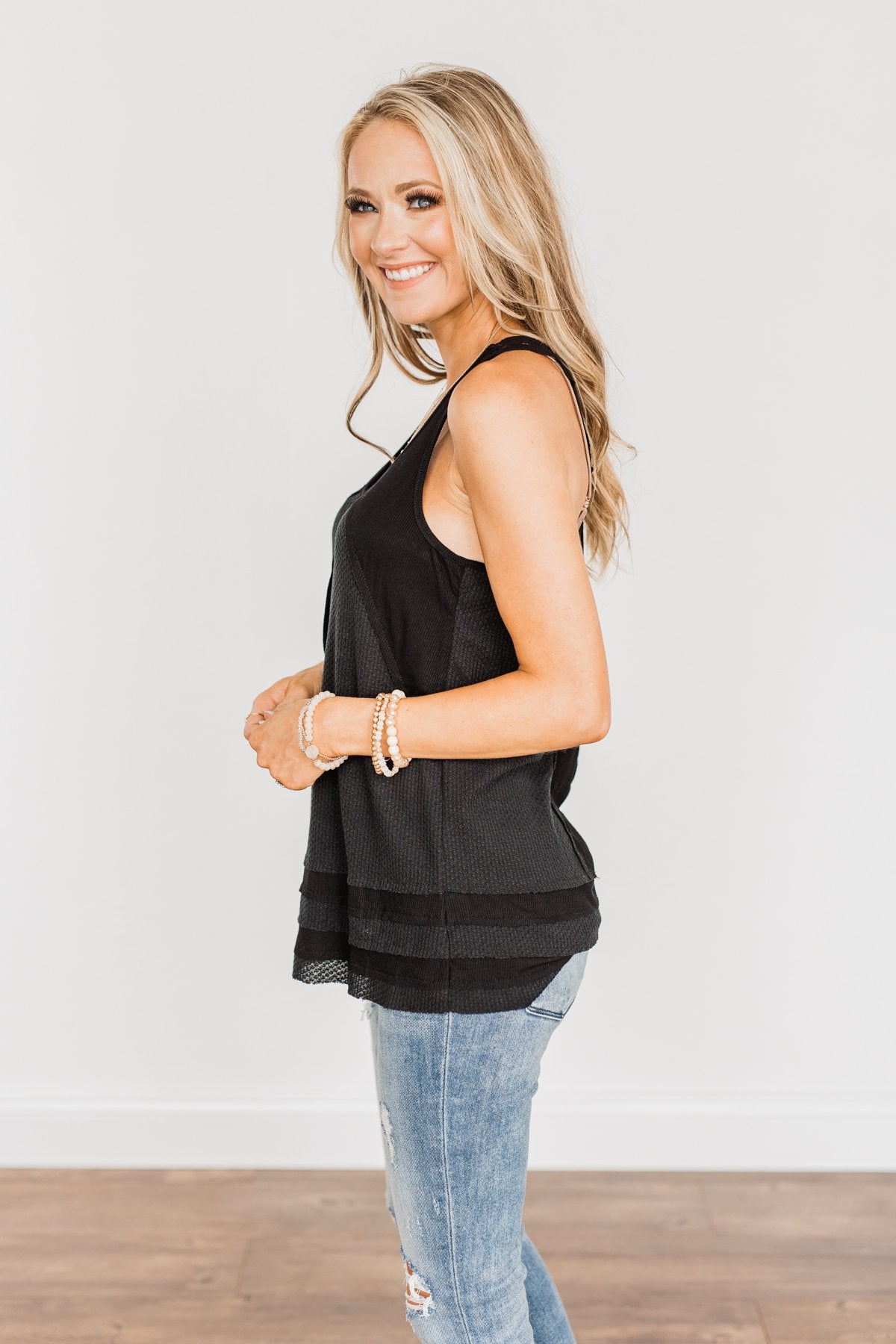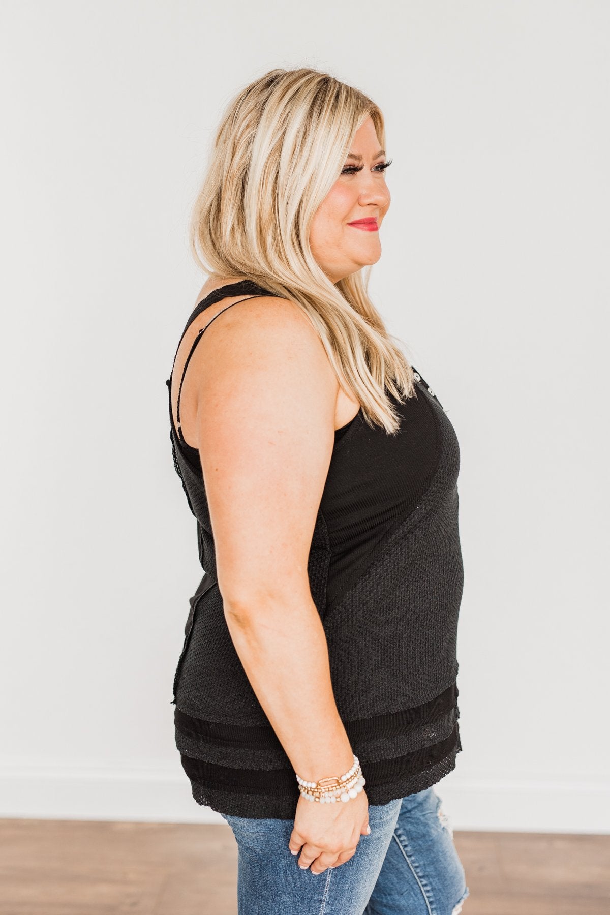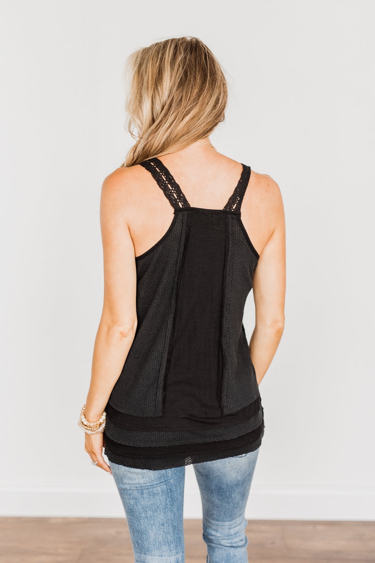 Express your style and look great while doing it with this simply splendid tank top! This tank exudes quality that never goes out of style with features like the waffle knit material, raw seam details along the body, crochet straps, and a button neckline! You're sure to keep your smile shining whenever you're in this stunning piece!