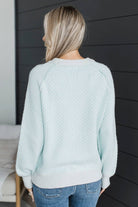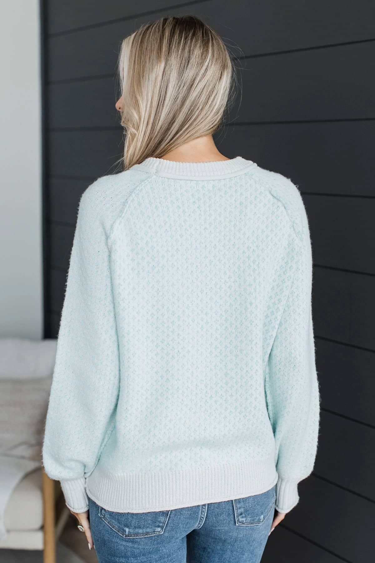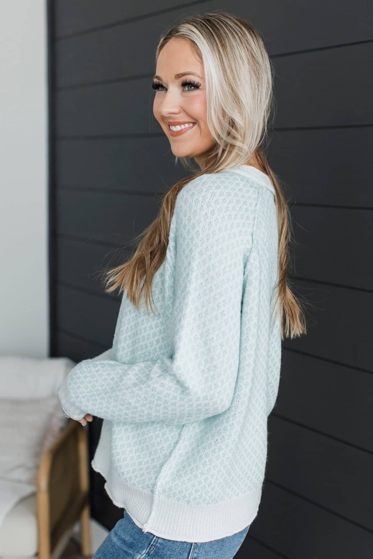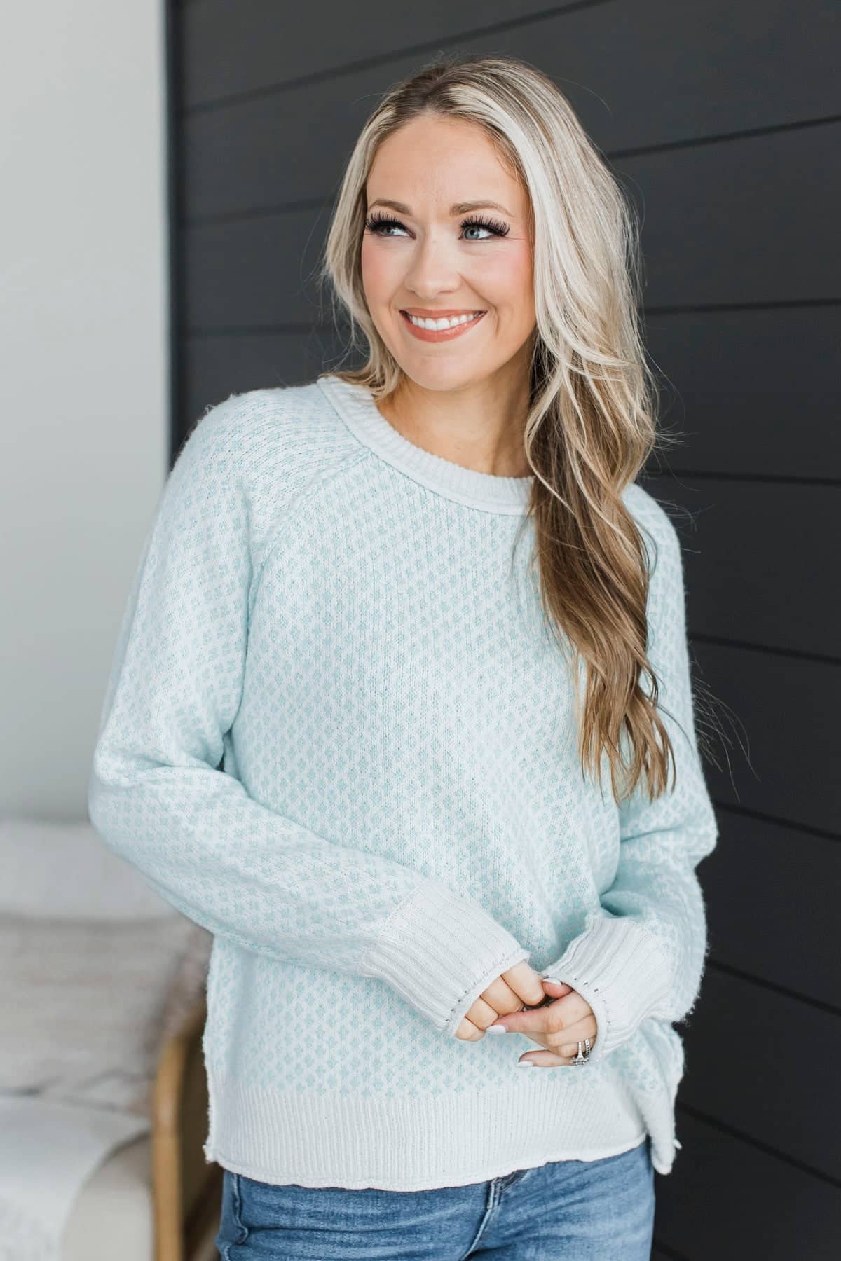 Just Stopping By Printed Knit Sweater- Light Aqua