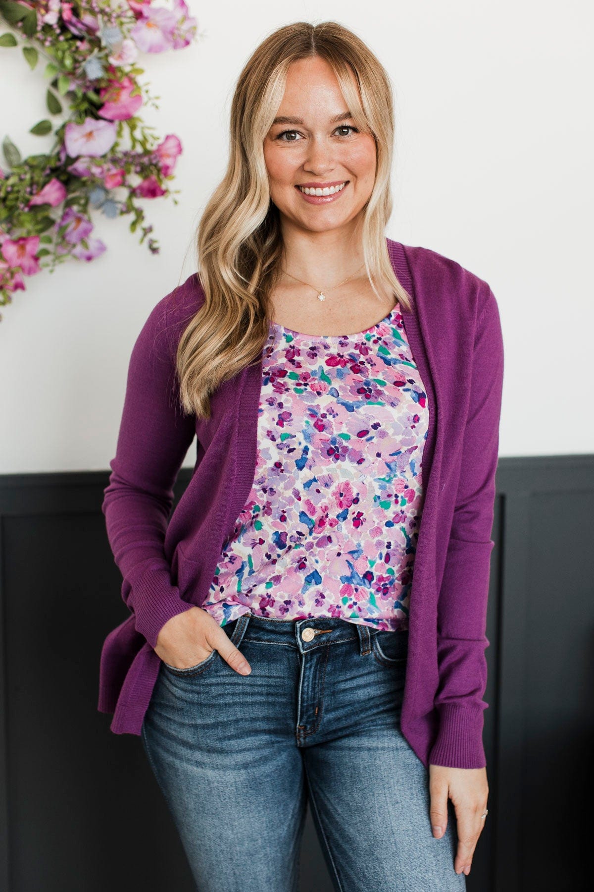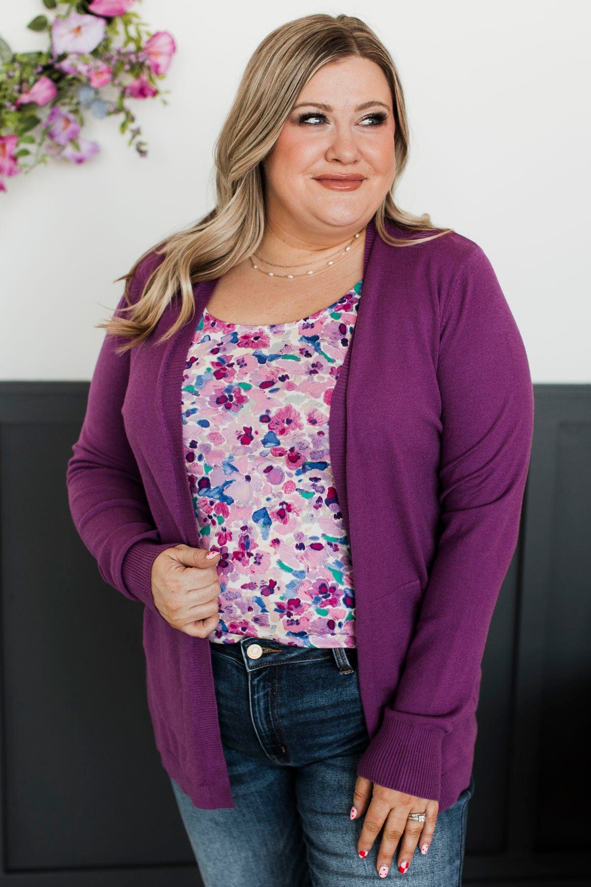 Many Reasons Lightweight Cardigan- Dark Orchid