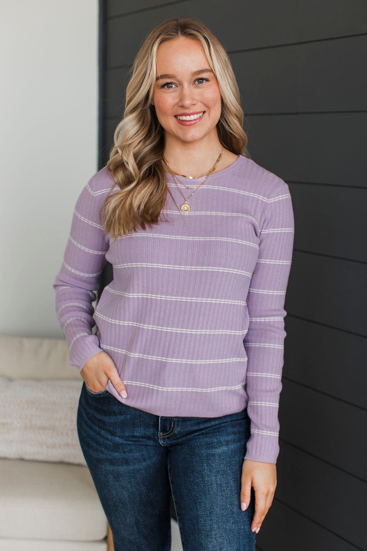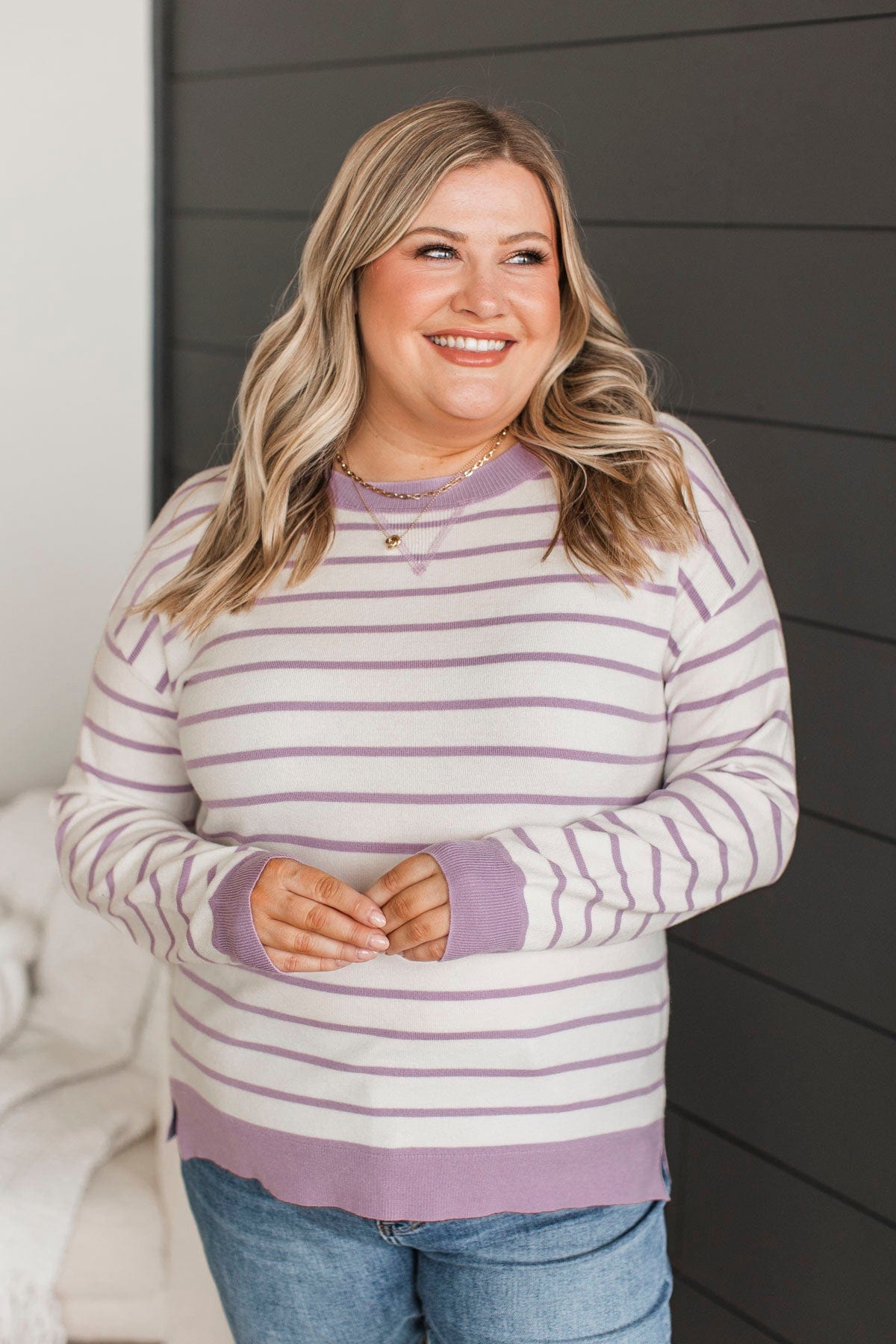 Fulfilling Friendships Striped Knit Sweater- Orchid