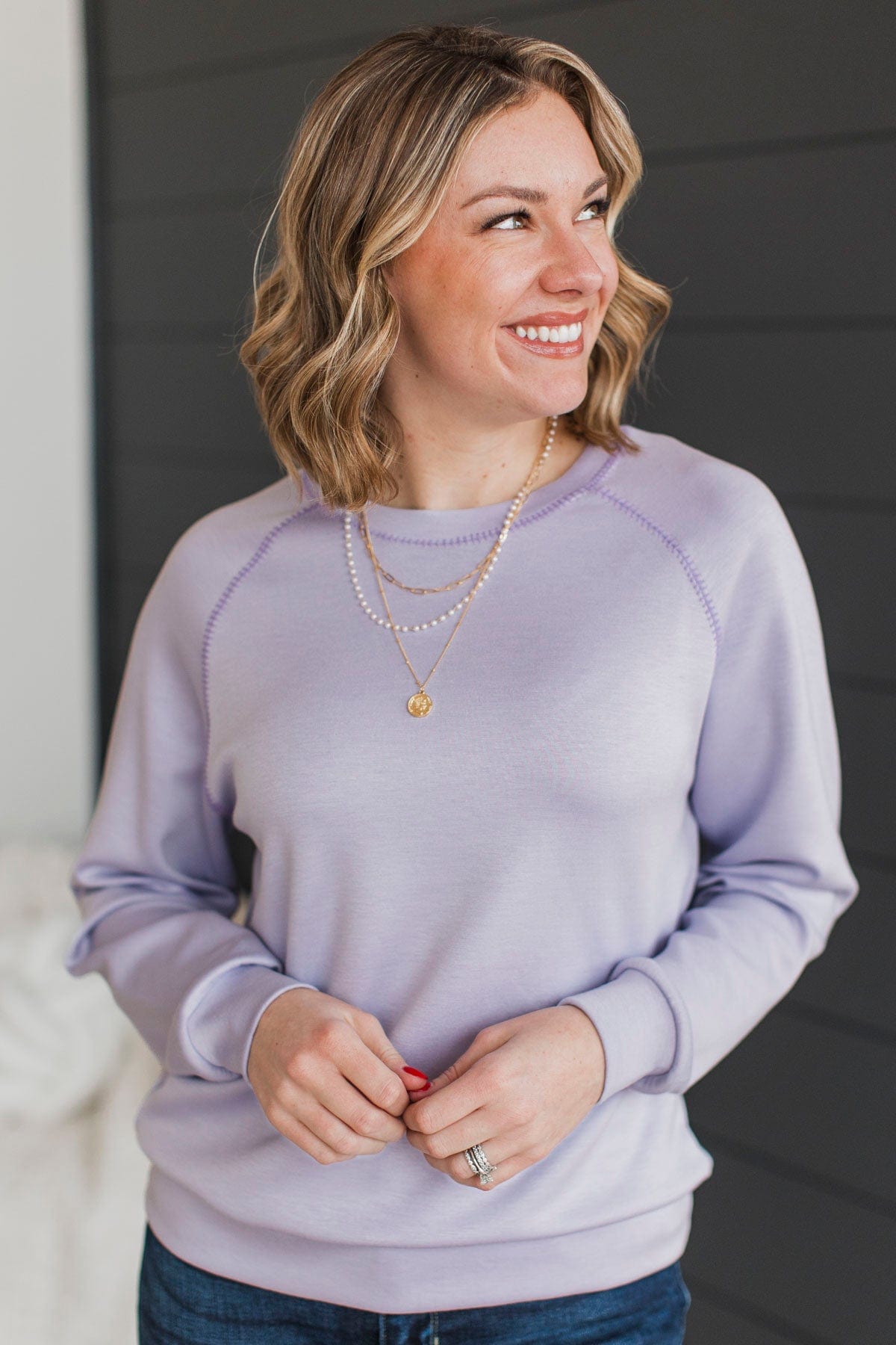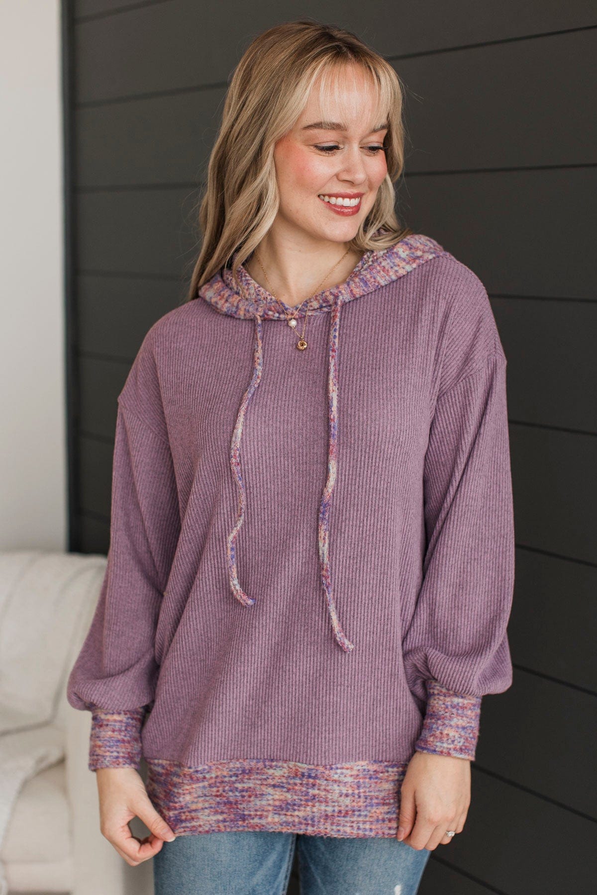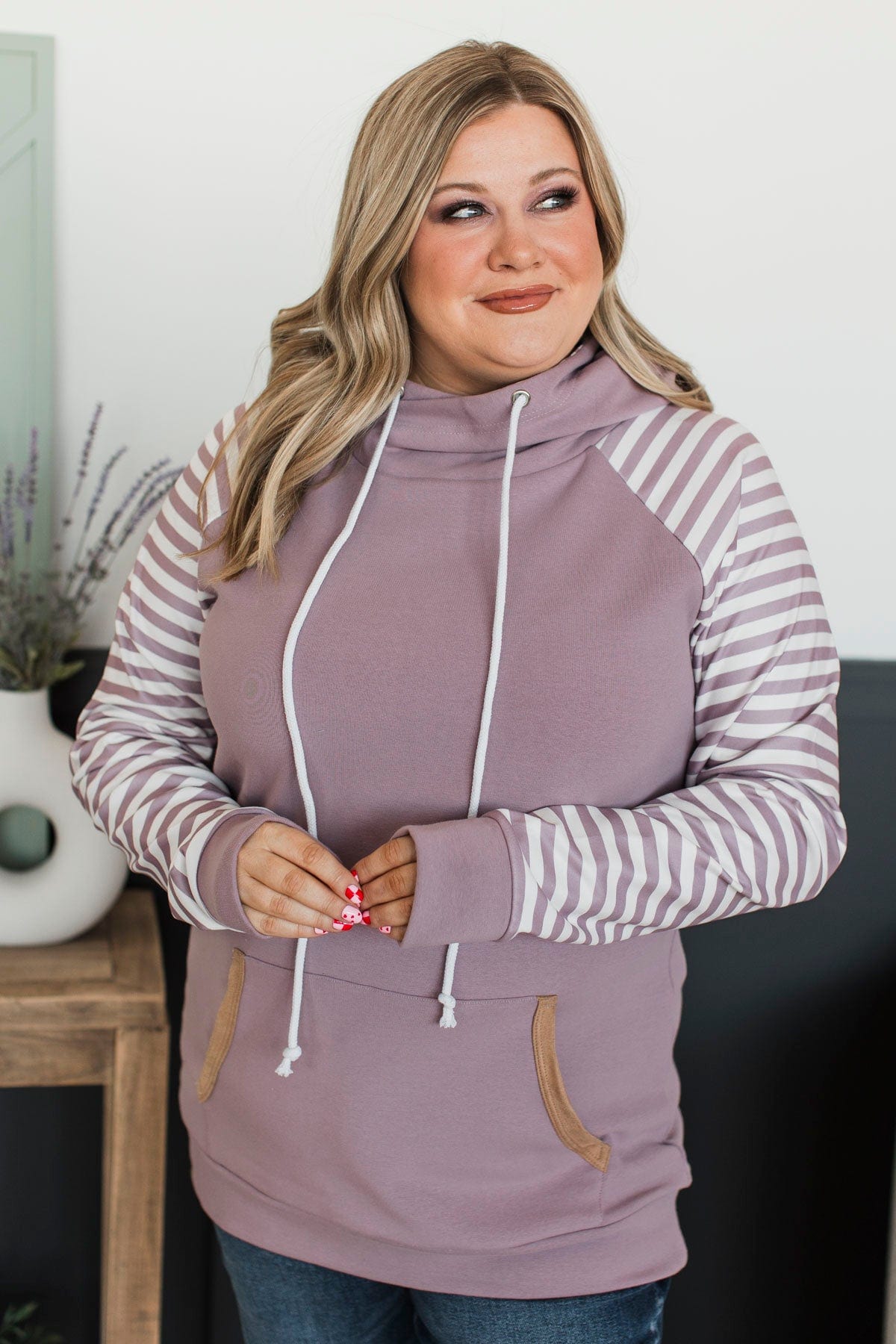 Major Impression Striped Drawstring Hoodie- Dusty Lavender