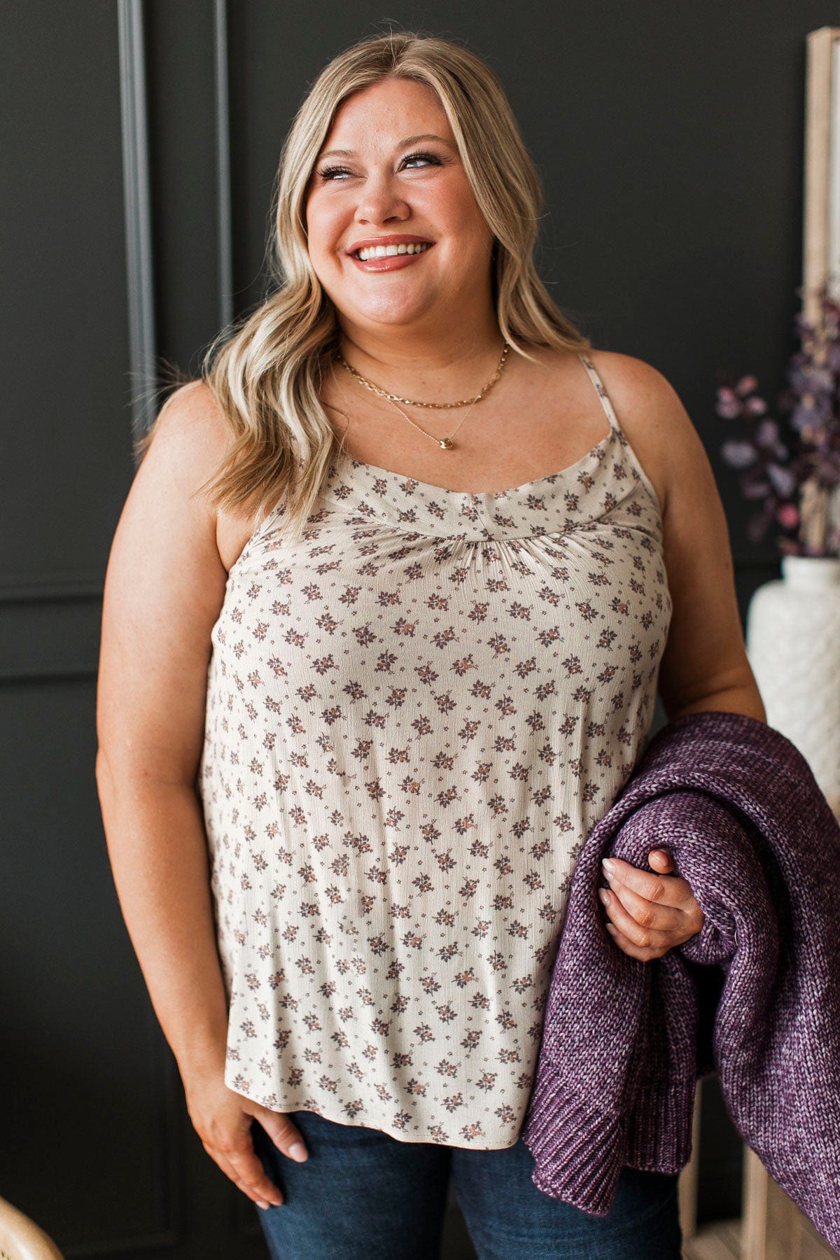 Ready For The Future Floral Tank Top- Light Taupe & Plum