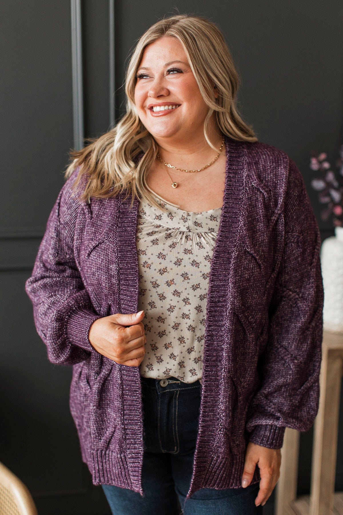 Comfortable With Myself Knit Cardigan- Deep Purple