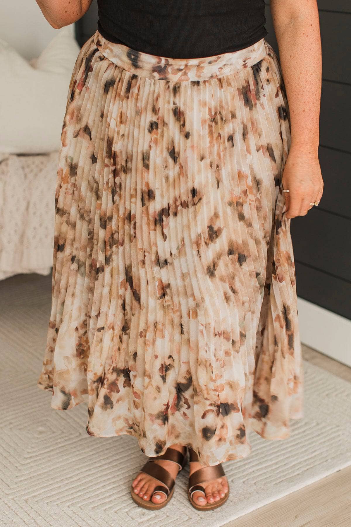 Feeling Impressed Floral Pleated Skirt- Beige Multi