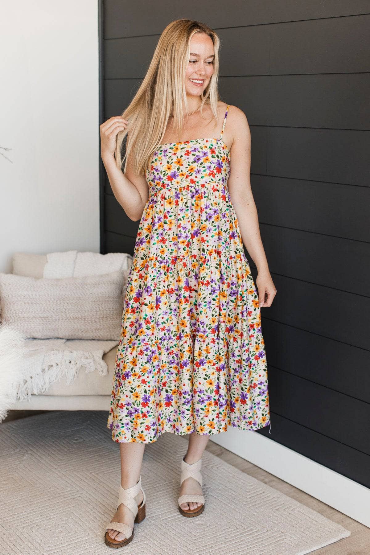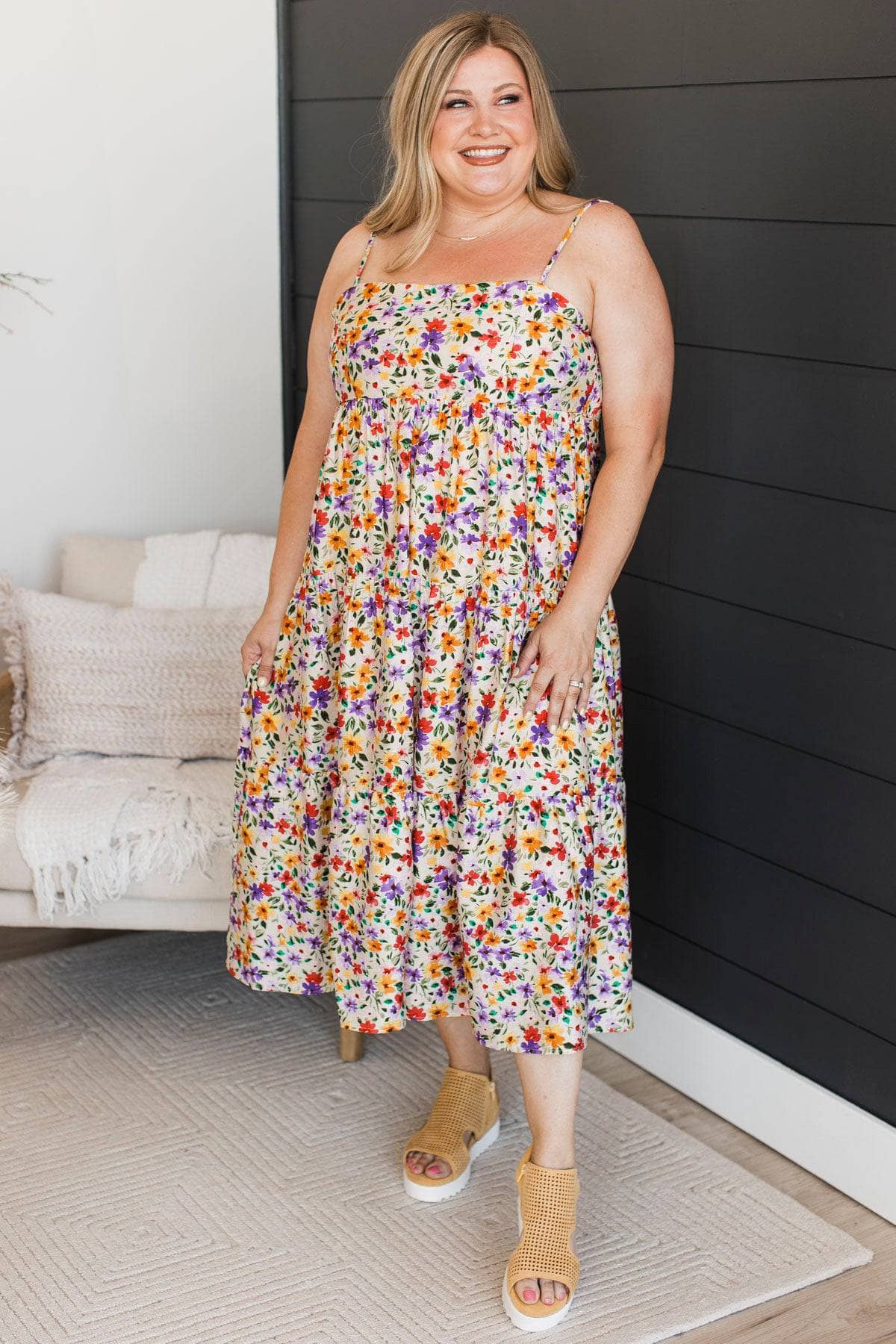 Forever In Your Eyes Floral Midi Dress- Ivory Multi