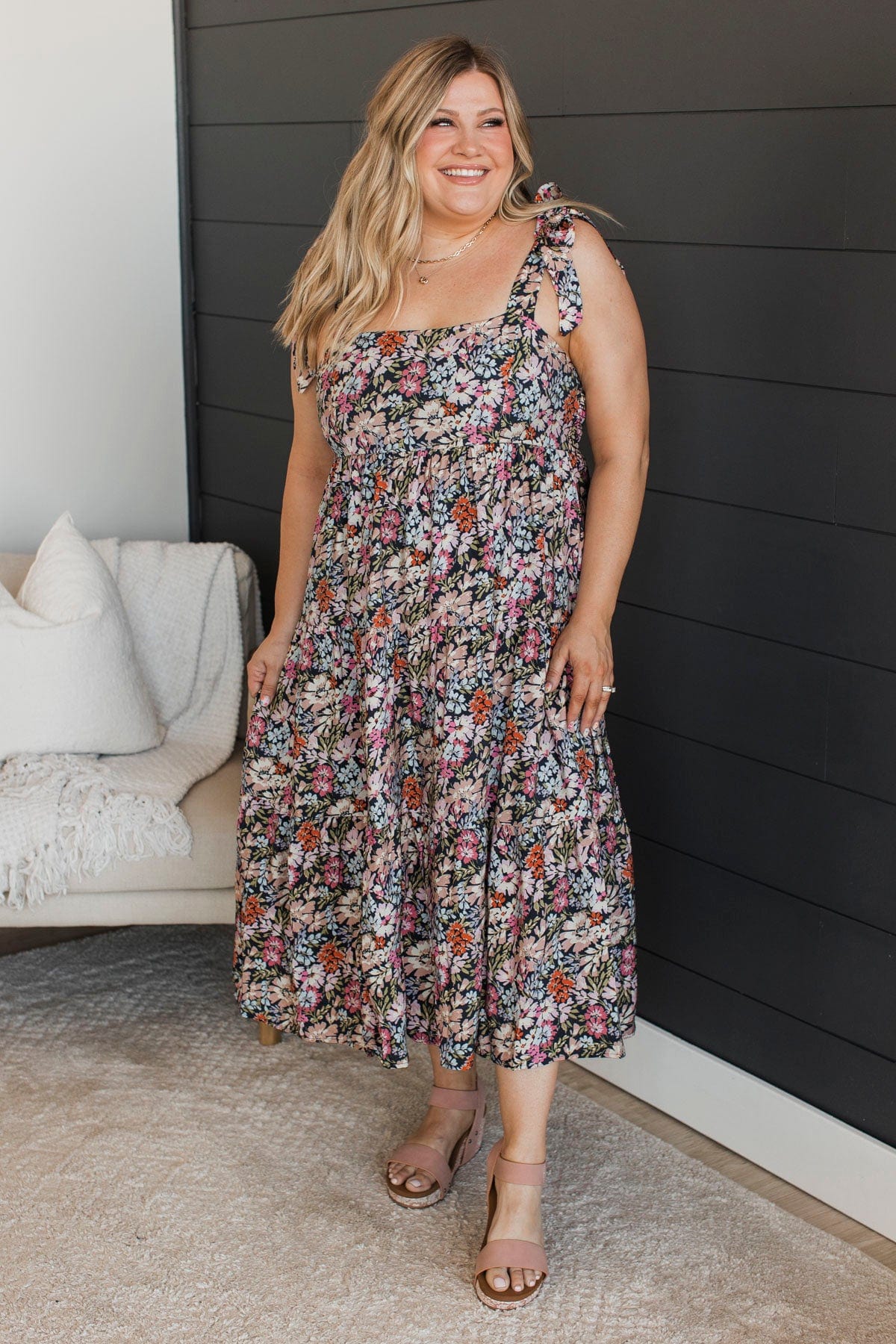 Prettiest Smiles Floral Midi Dress- Dark Navy