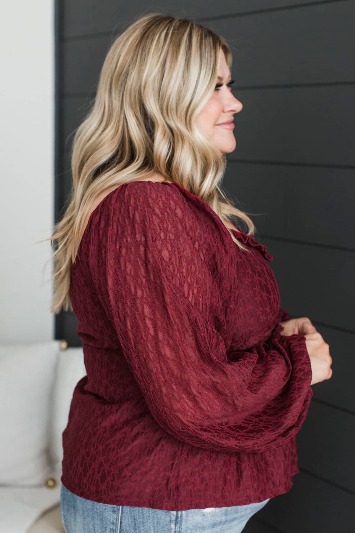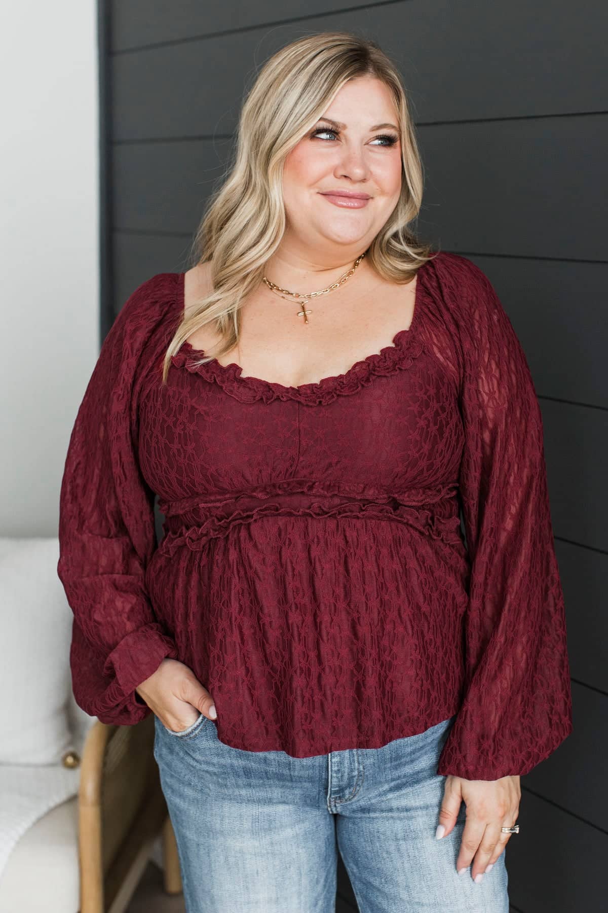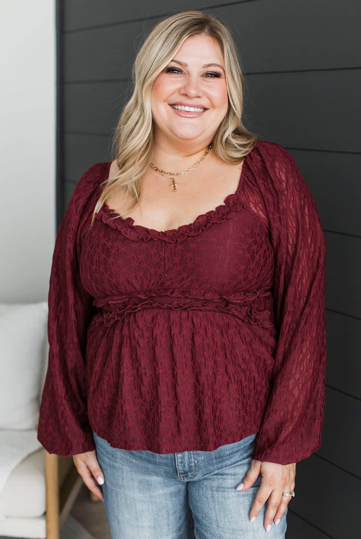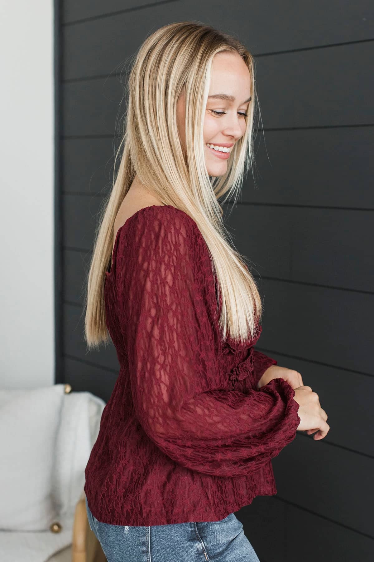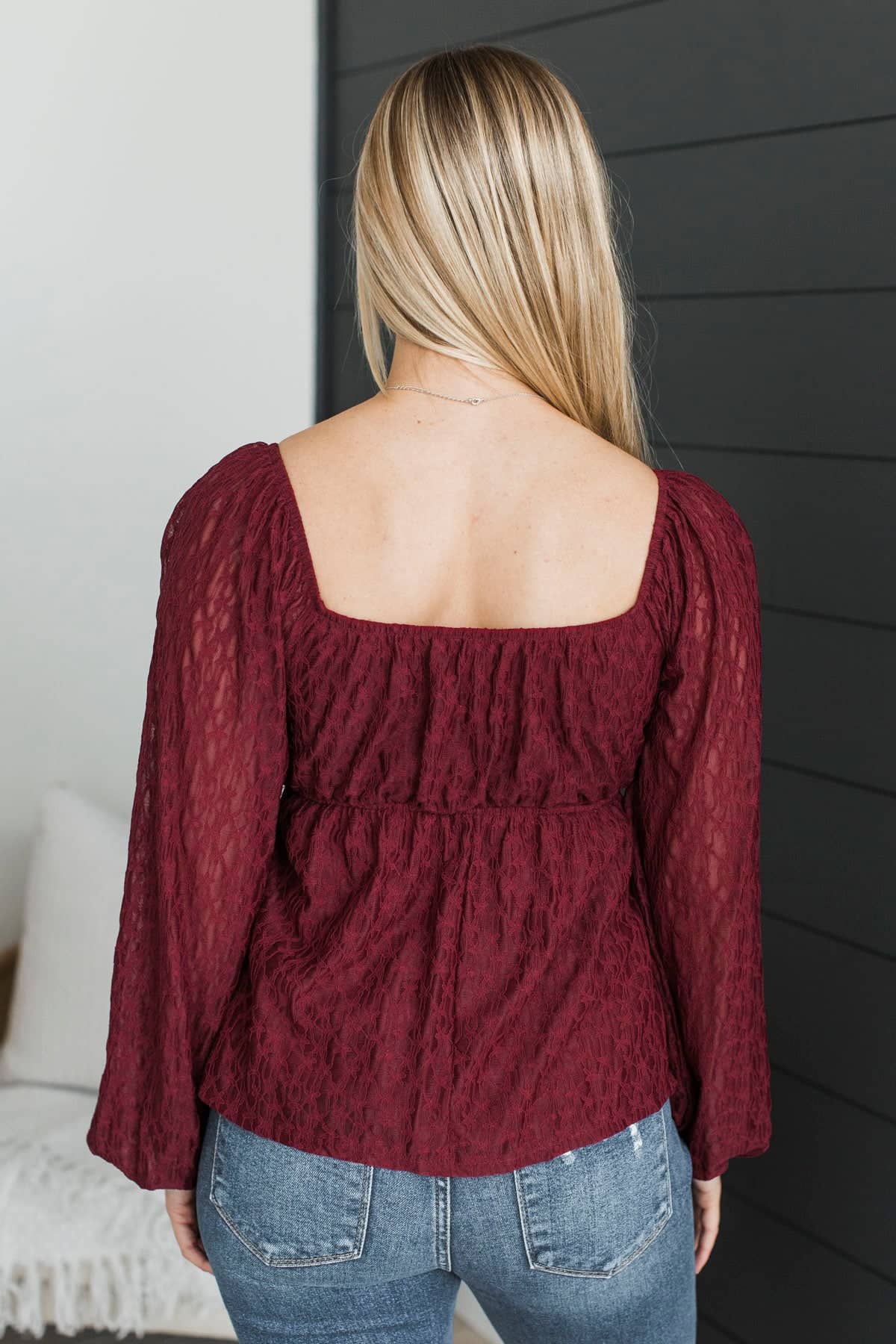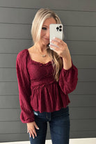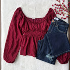 This gorgeous burgundy blouse is such a great top for work, date nights, holiday events and more! Style with dark wash denim for a classy outfit.