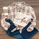 This graphic tee is so perfect for any Fall day! Pair with our new plaid top and a pair of dark wash denim.