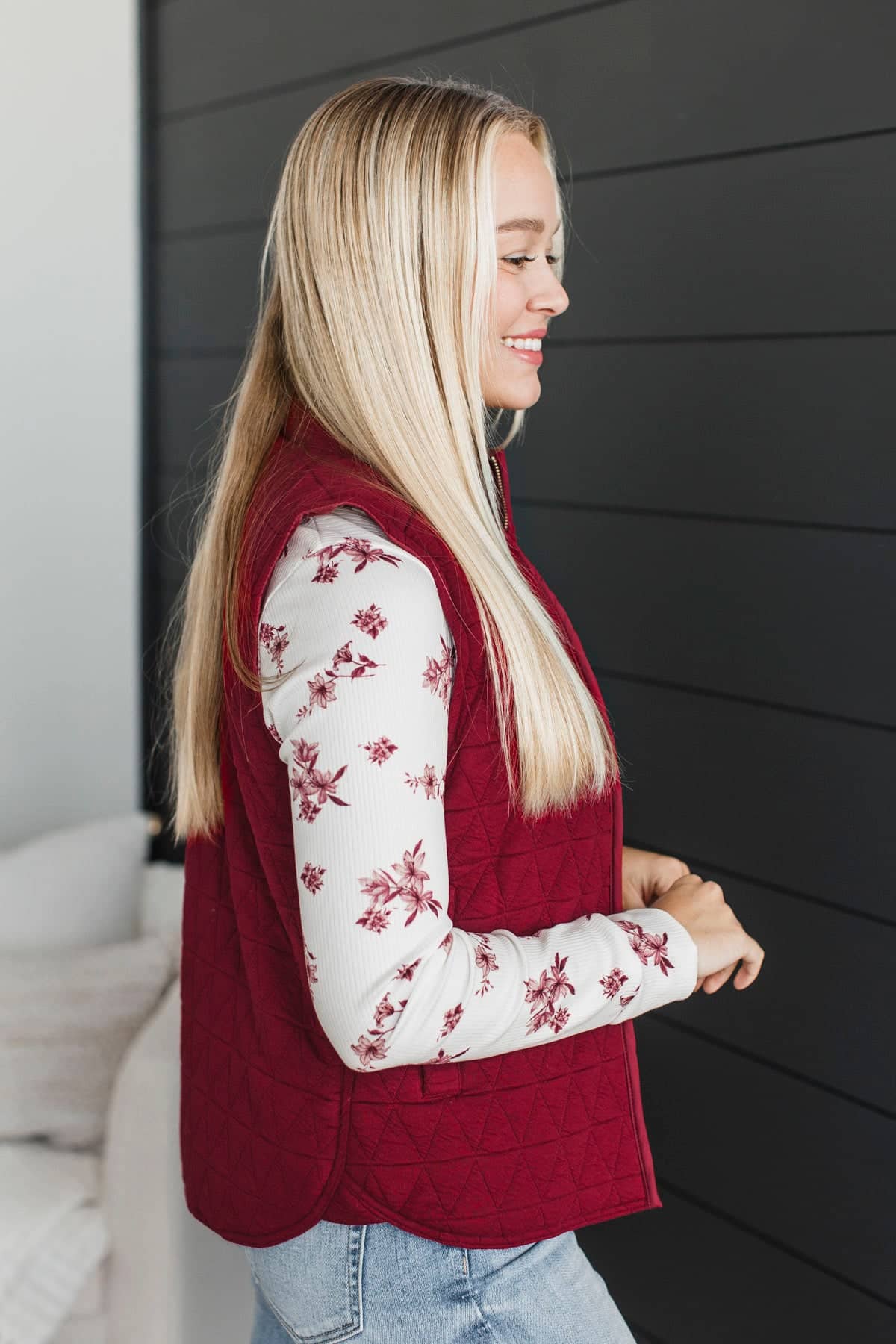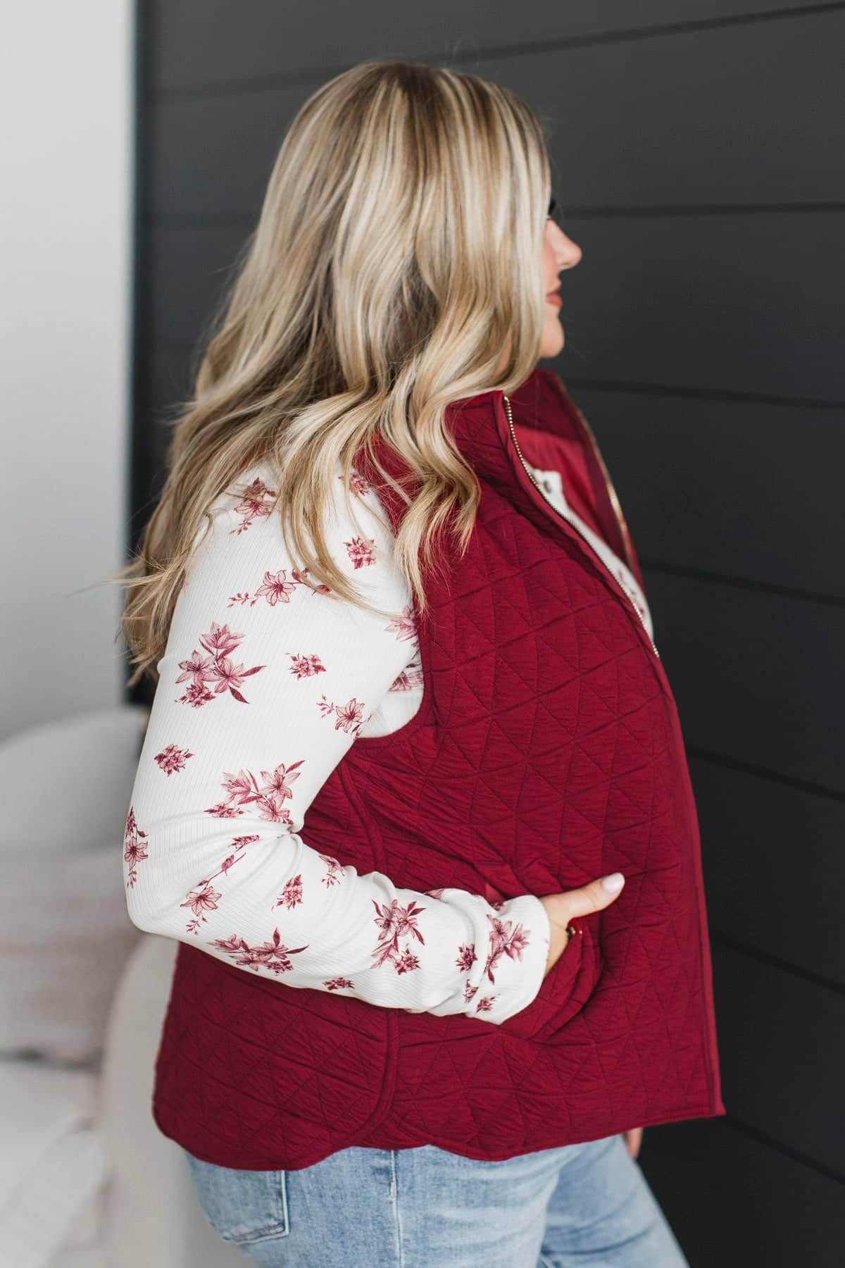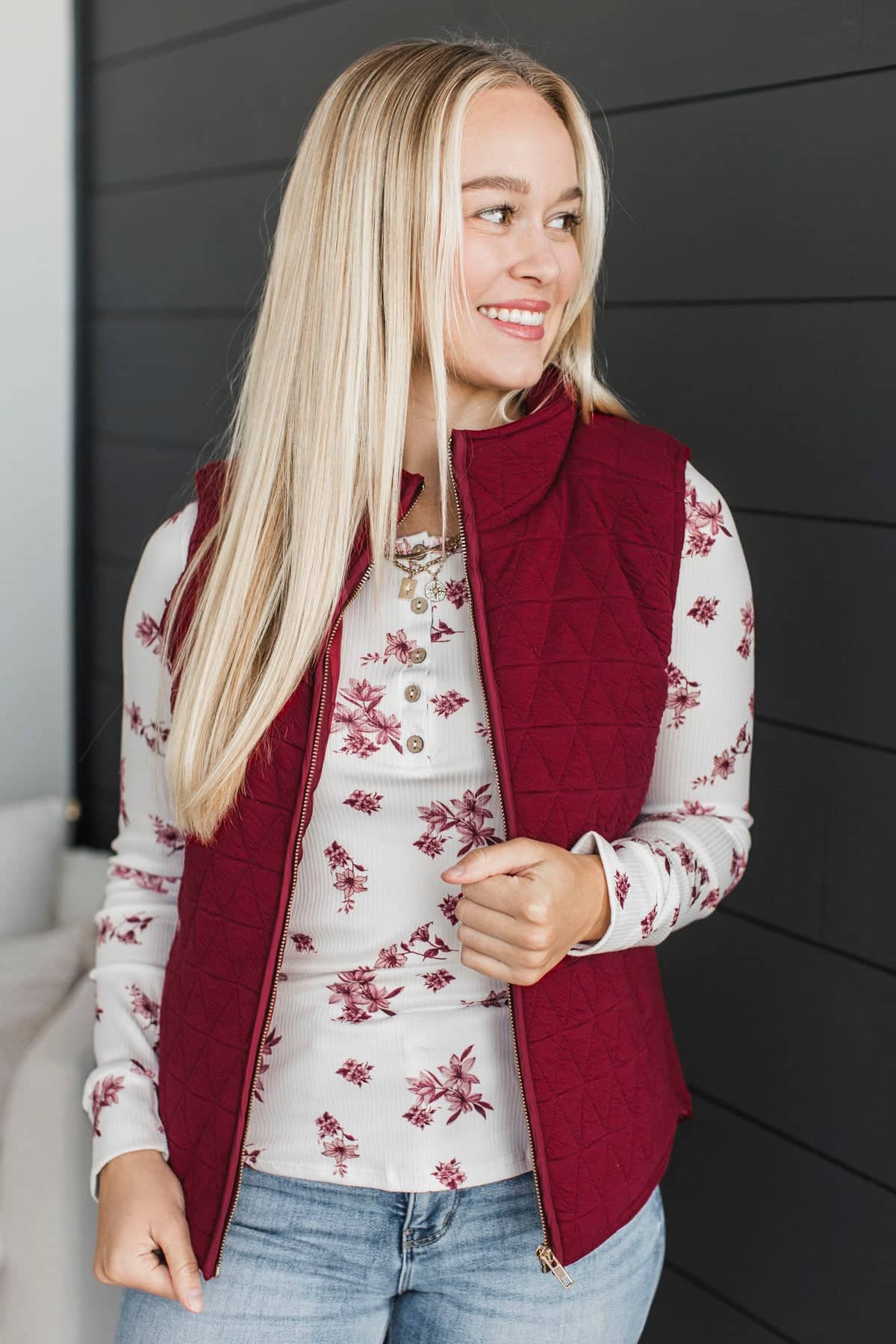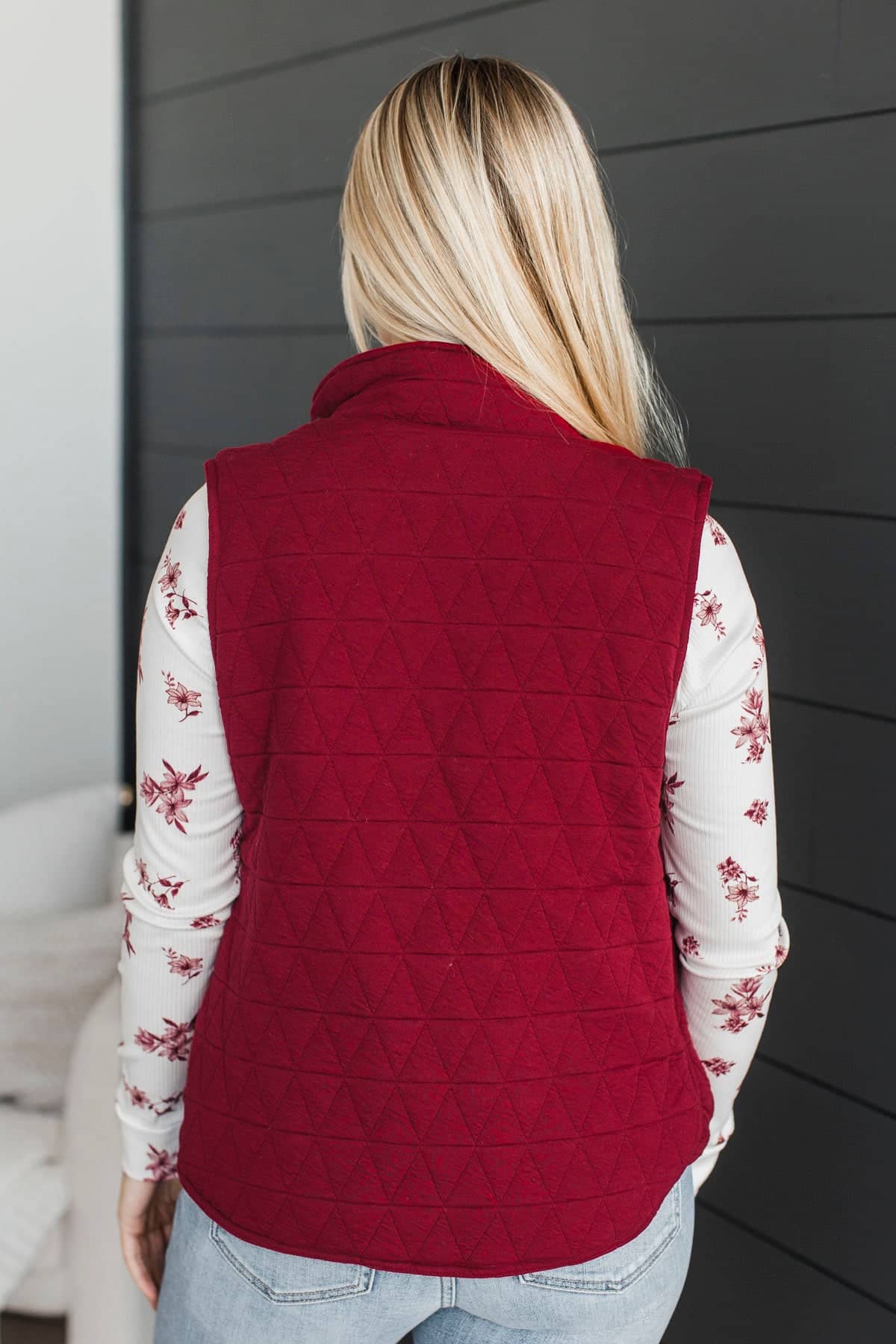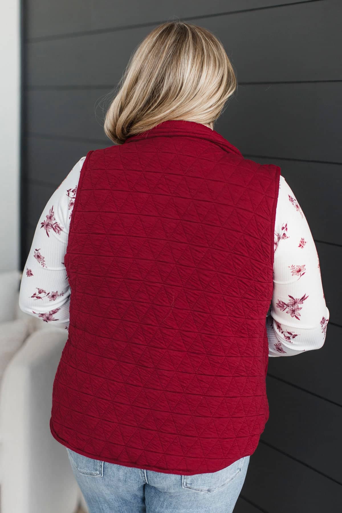 Appreciate Everything Quilted Puffer Vest- Burgundy