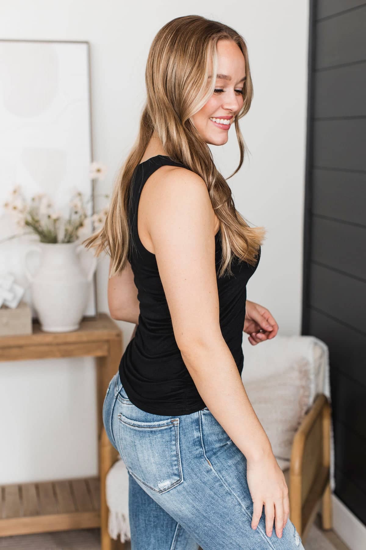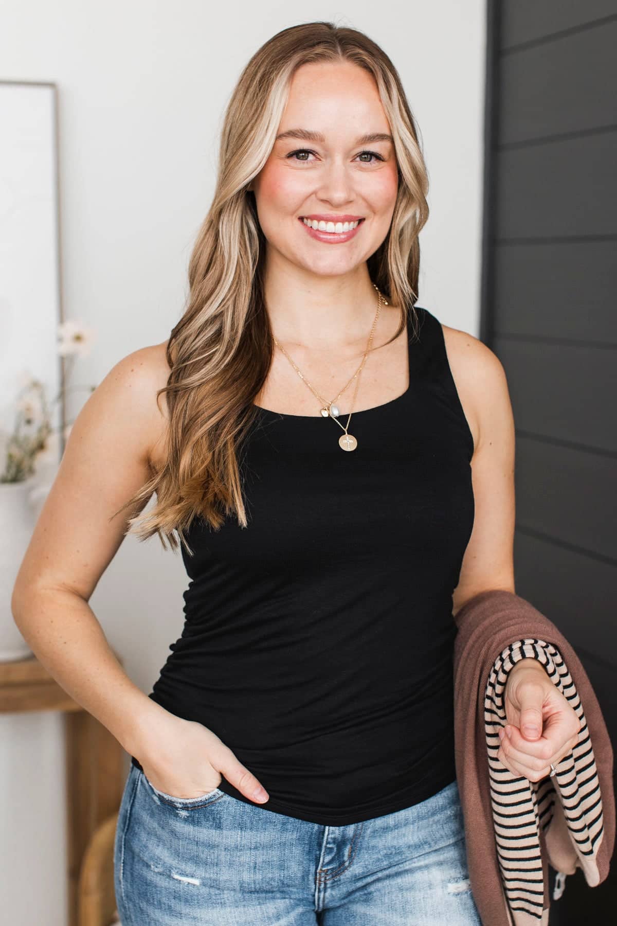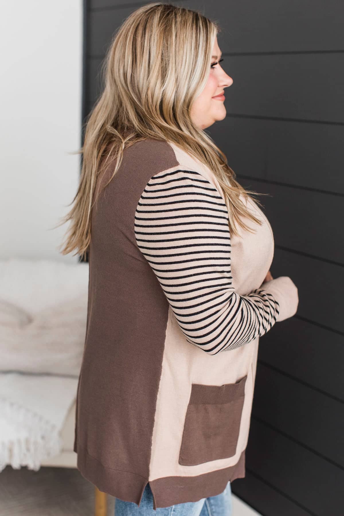 This comfy and neutral striped cardigan is perfect to style with a black tank top and jeans for any day.
