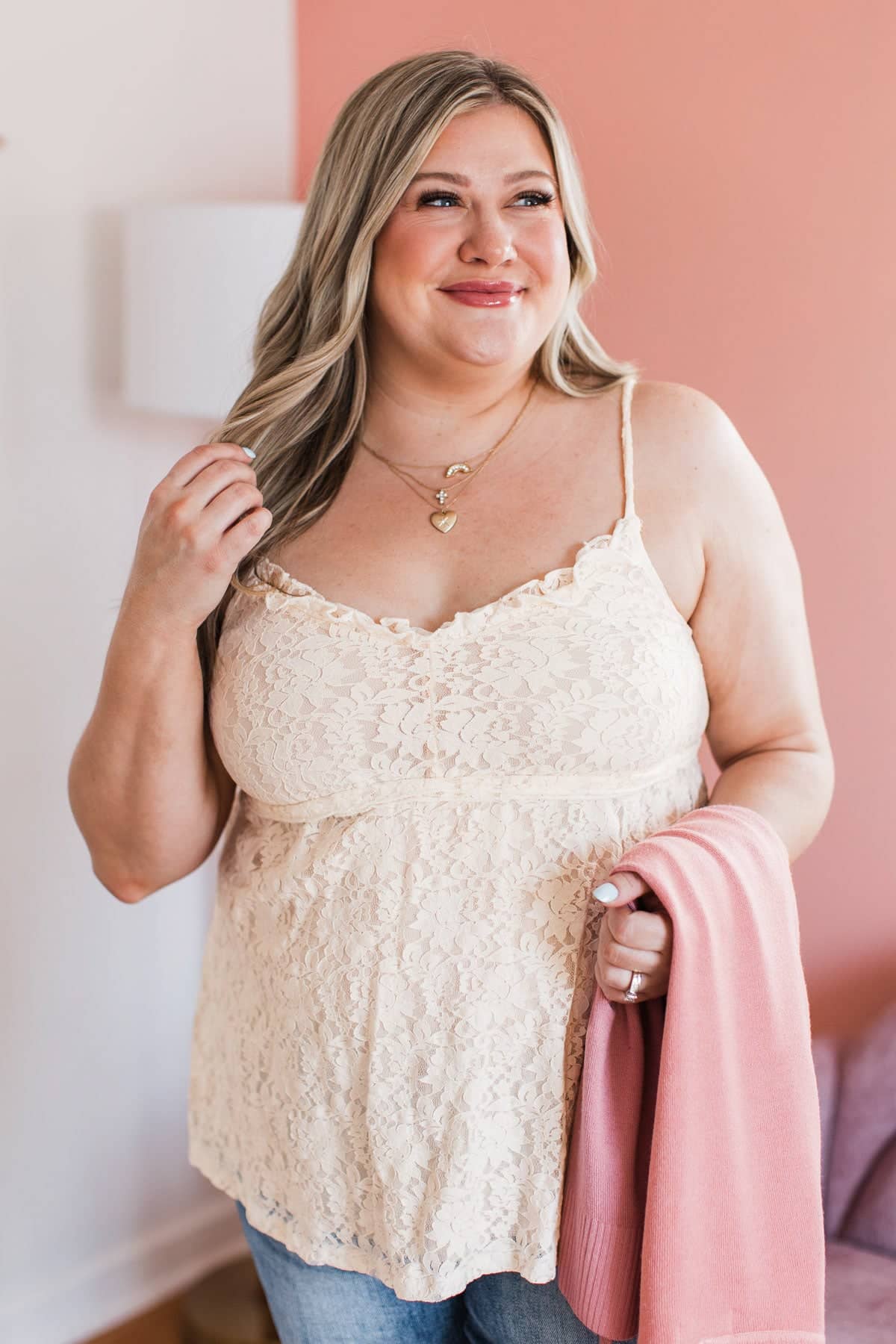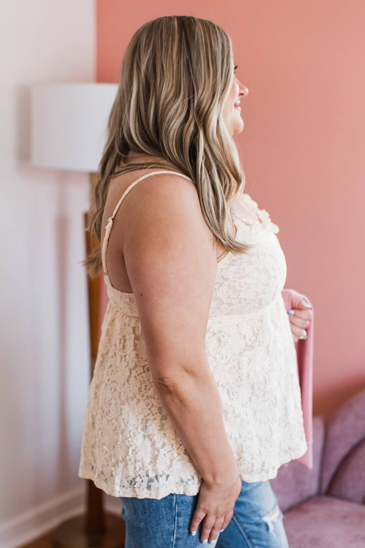 Love Deeply Floral Lace Babydoll Tank Top- Cream