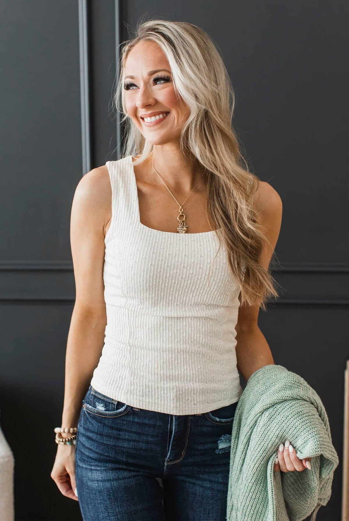- Hi-low scooped bottom hem