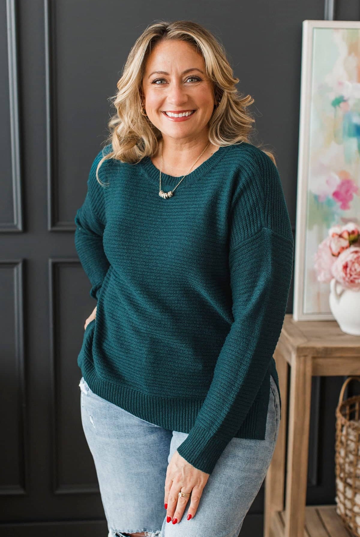 - Britta is modeling a size 27. (Sized up one size)