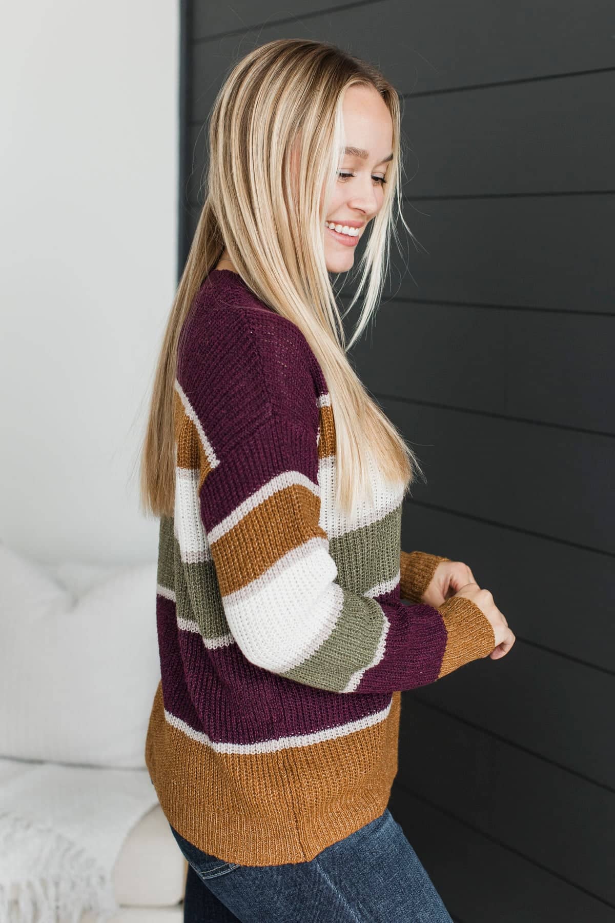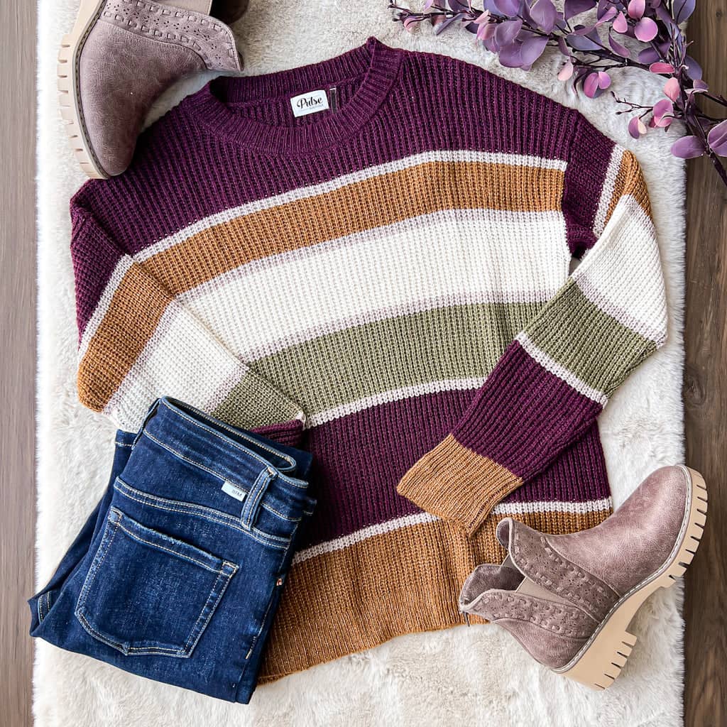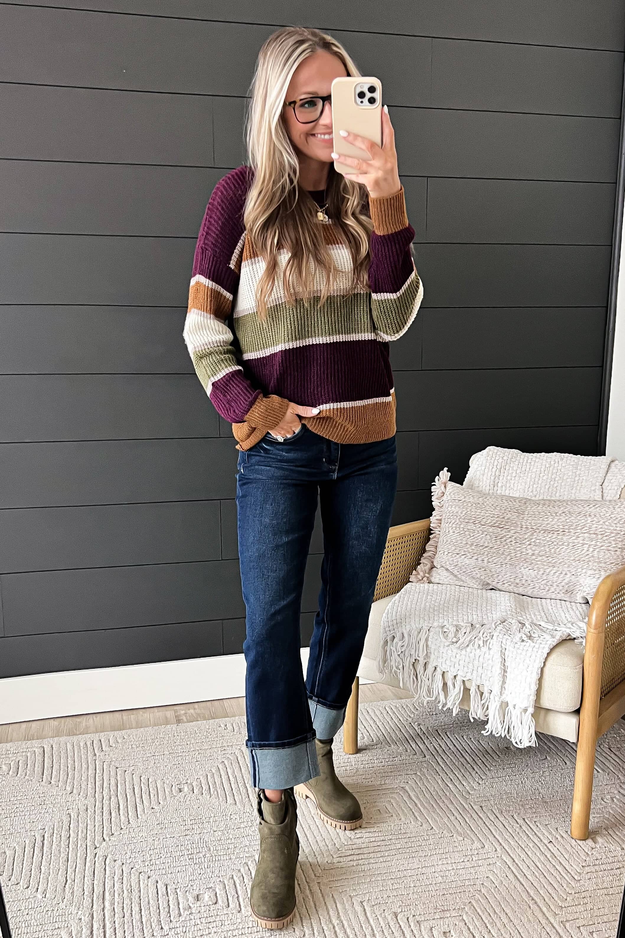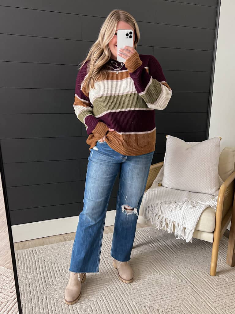 This striped sweater is such a great staple piece for your Fall or Winter wardrobe! Style with jeans and booties for the cutest everyday look.