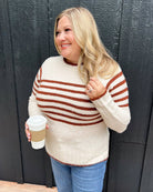 Anything Goes Striped Knit Sweater- Ivory & Copper