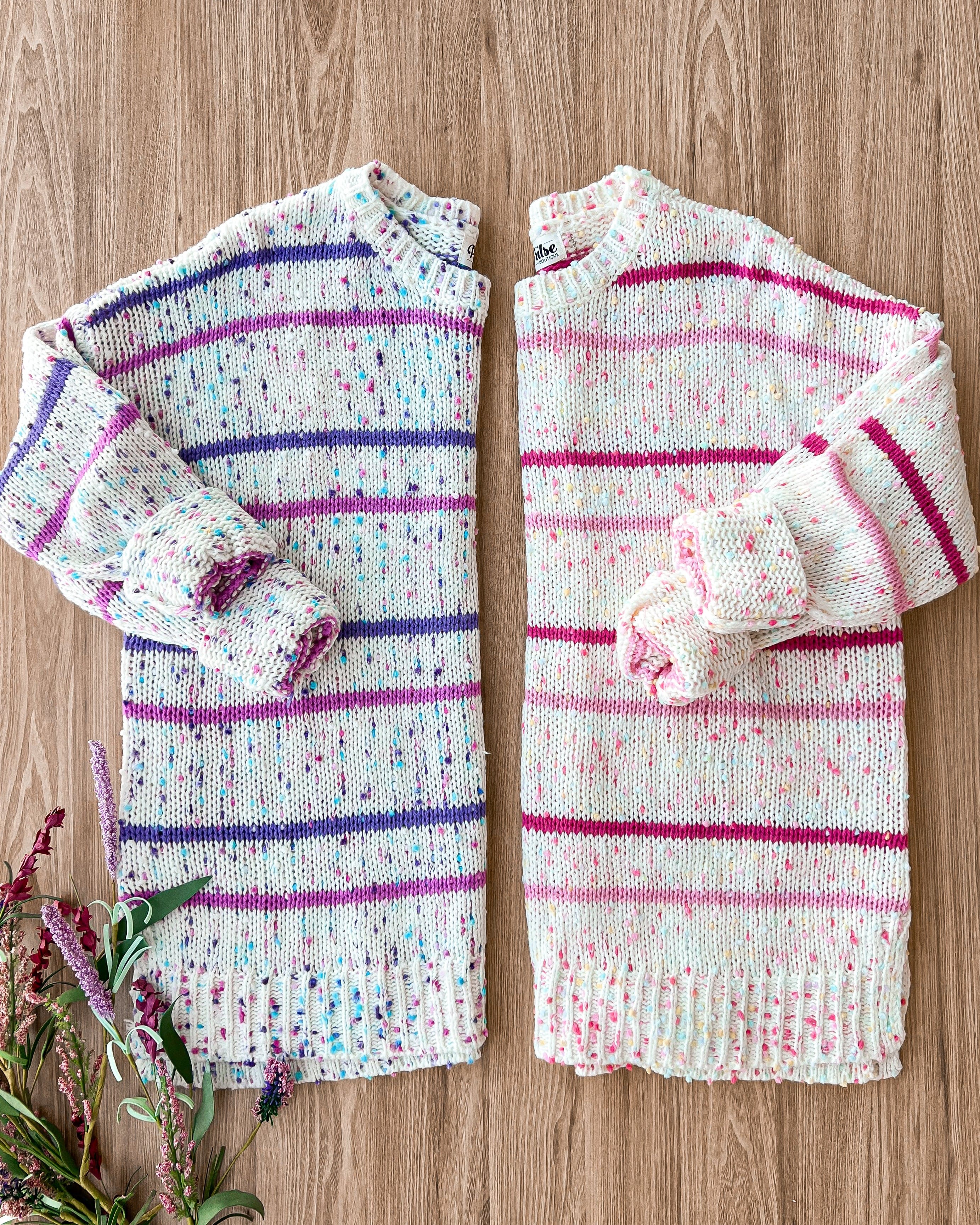 Stay Tuned Confetti Knit Sweater- Ivory & Lavender