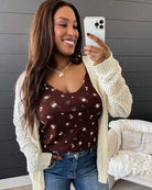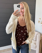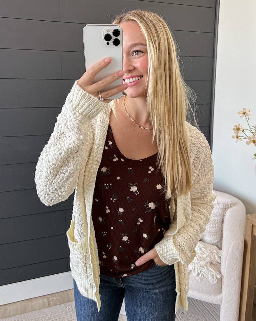 This adorable tank top and cardigan combo is perfect for any Fall day! Pair with our favorite mules and dark wash jeans.