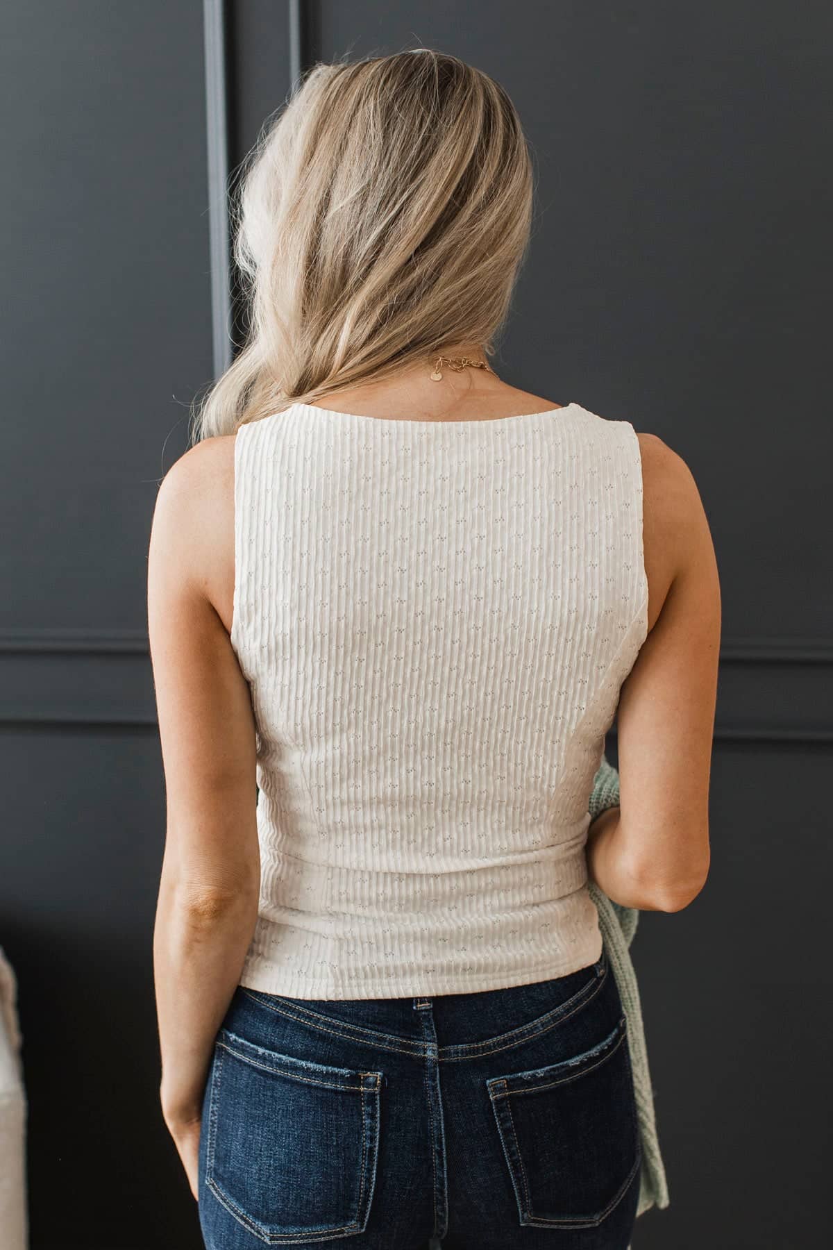 - Lightweight ribbed material with pointelle detailing. Features an inner lining.