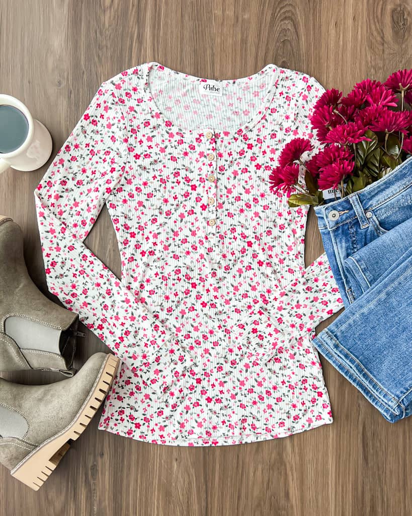 This floral henley is so cute and comfy for any day on the go! Pair with jeans and booties for a great Spring transition outfit.