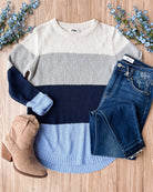 All About Spring Color Block Knit Sweater- Blue & Grey