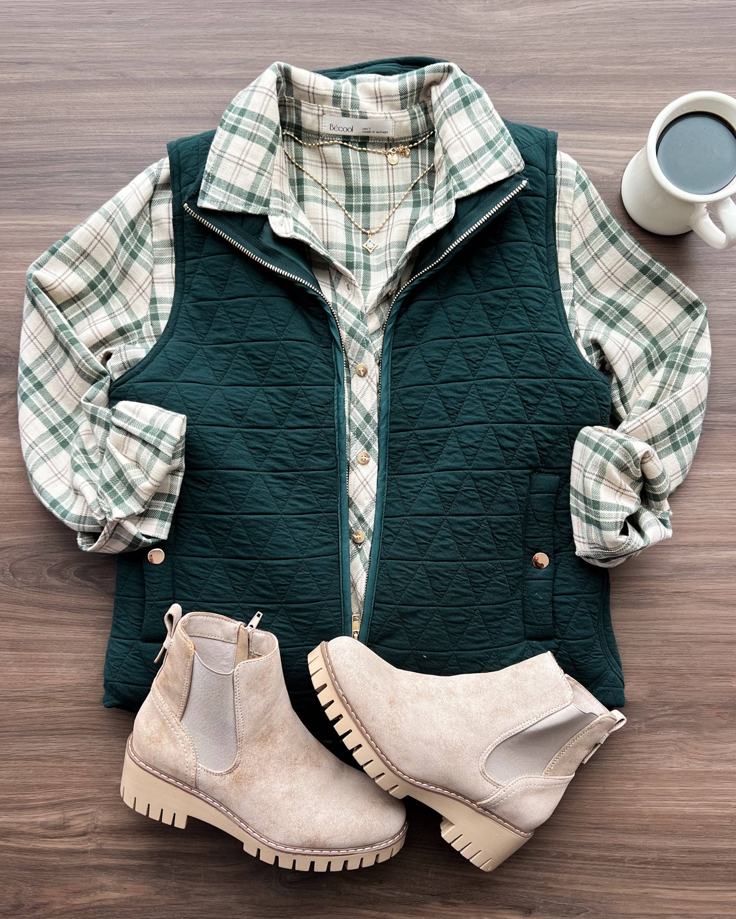 Appreciate Everything Quilted Puffer Vest- Forest Green