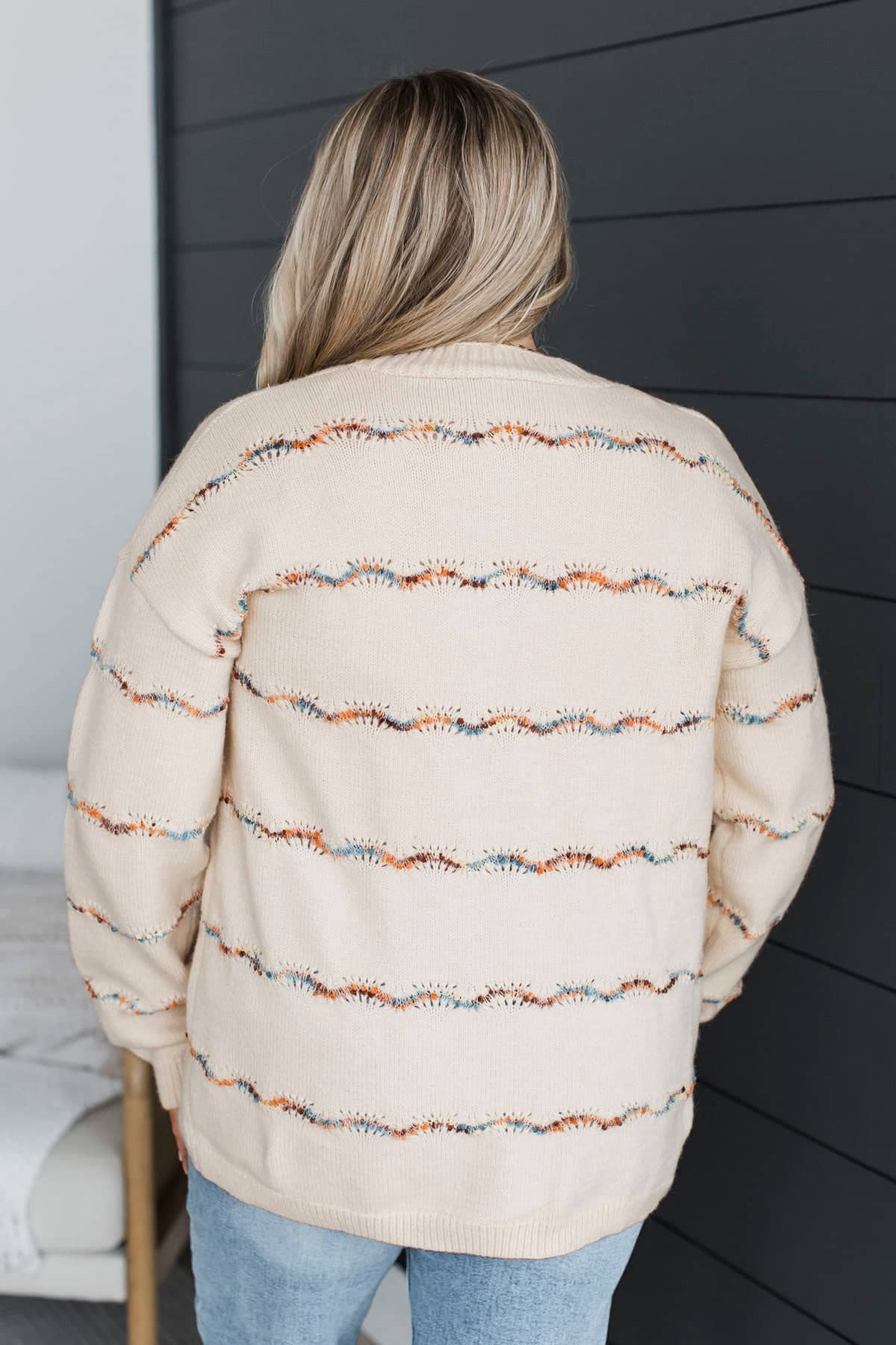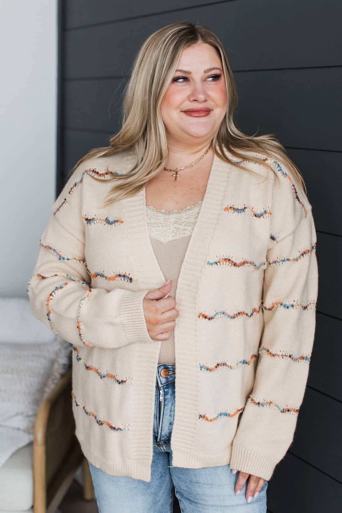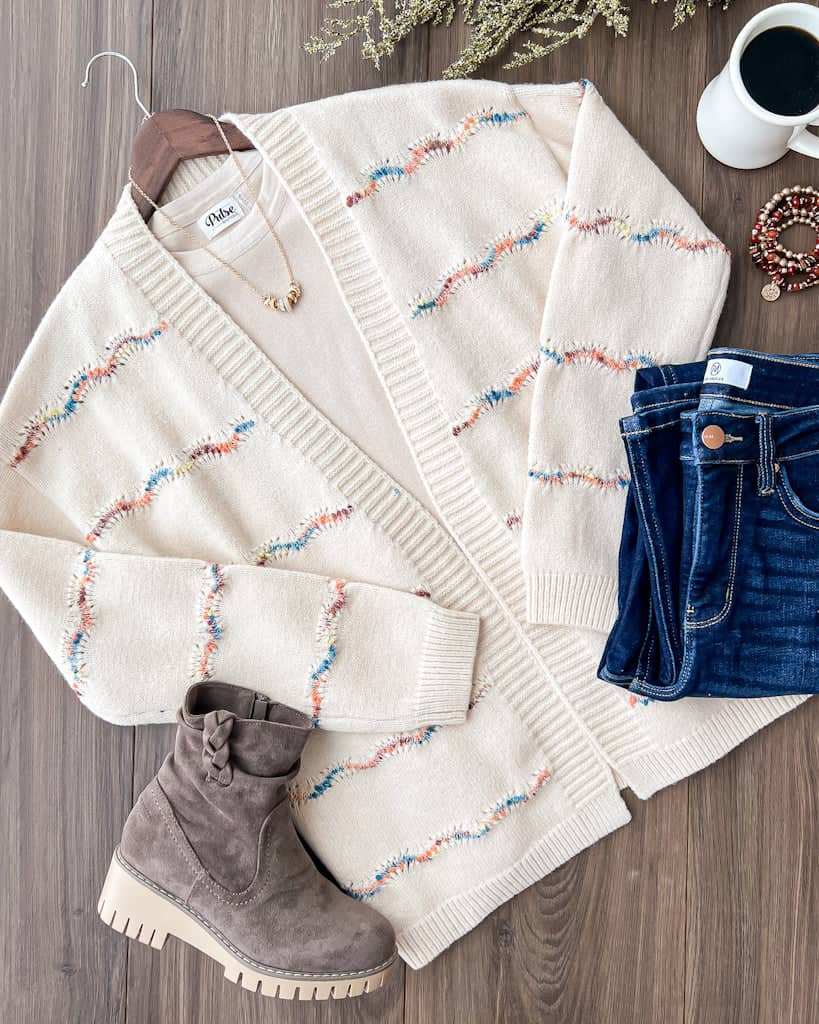 This striped cardigan is the ultimate staple piece for your Winter wardrobe! Style with jeans, booties and your favorite top.