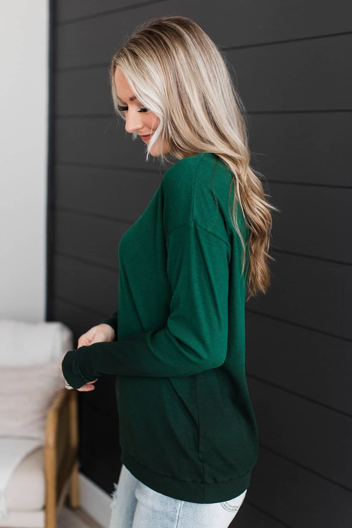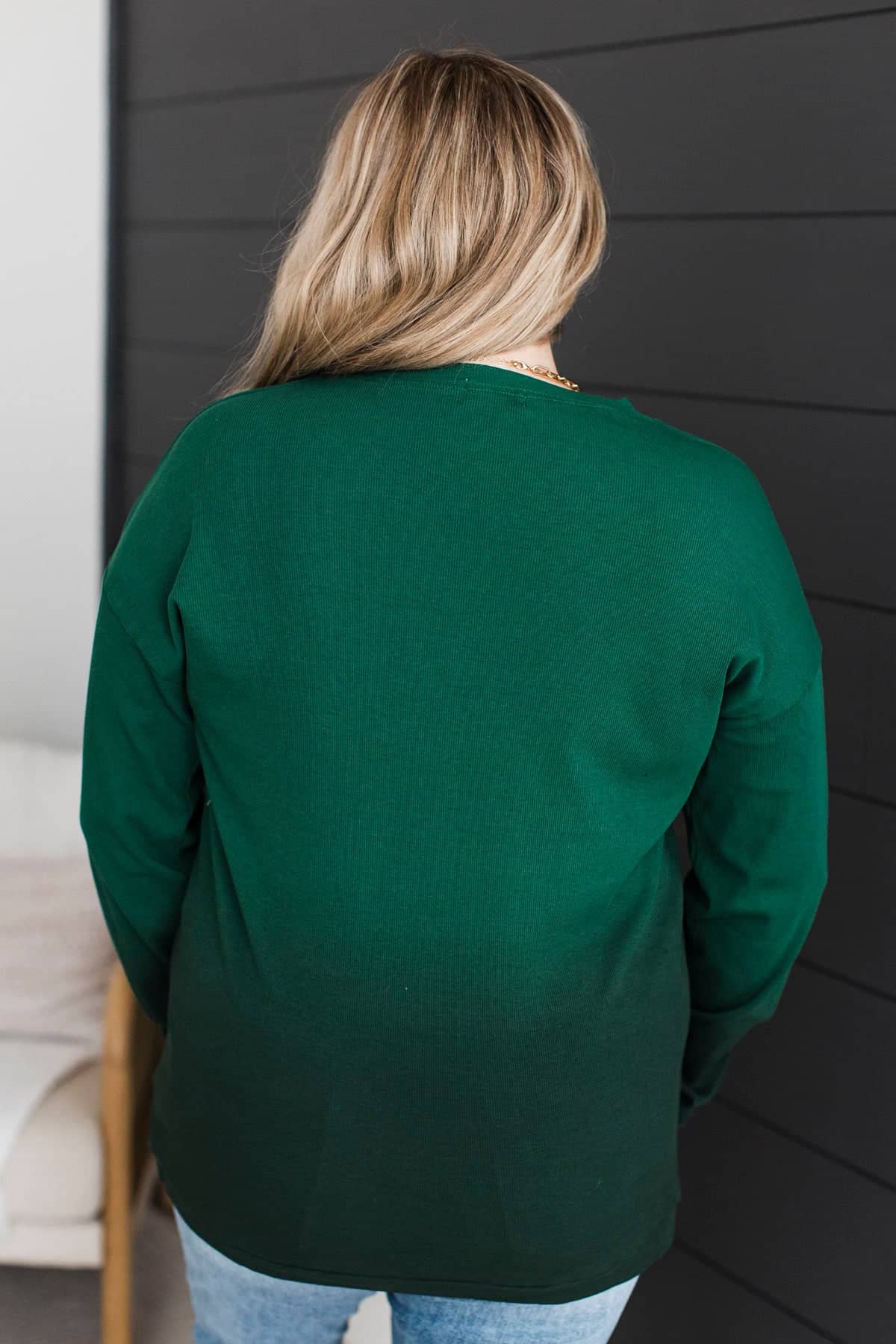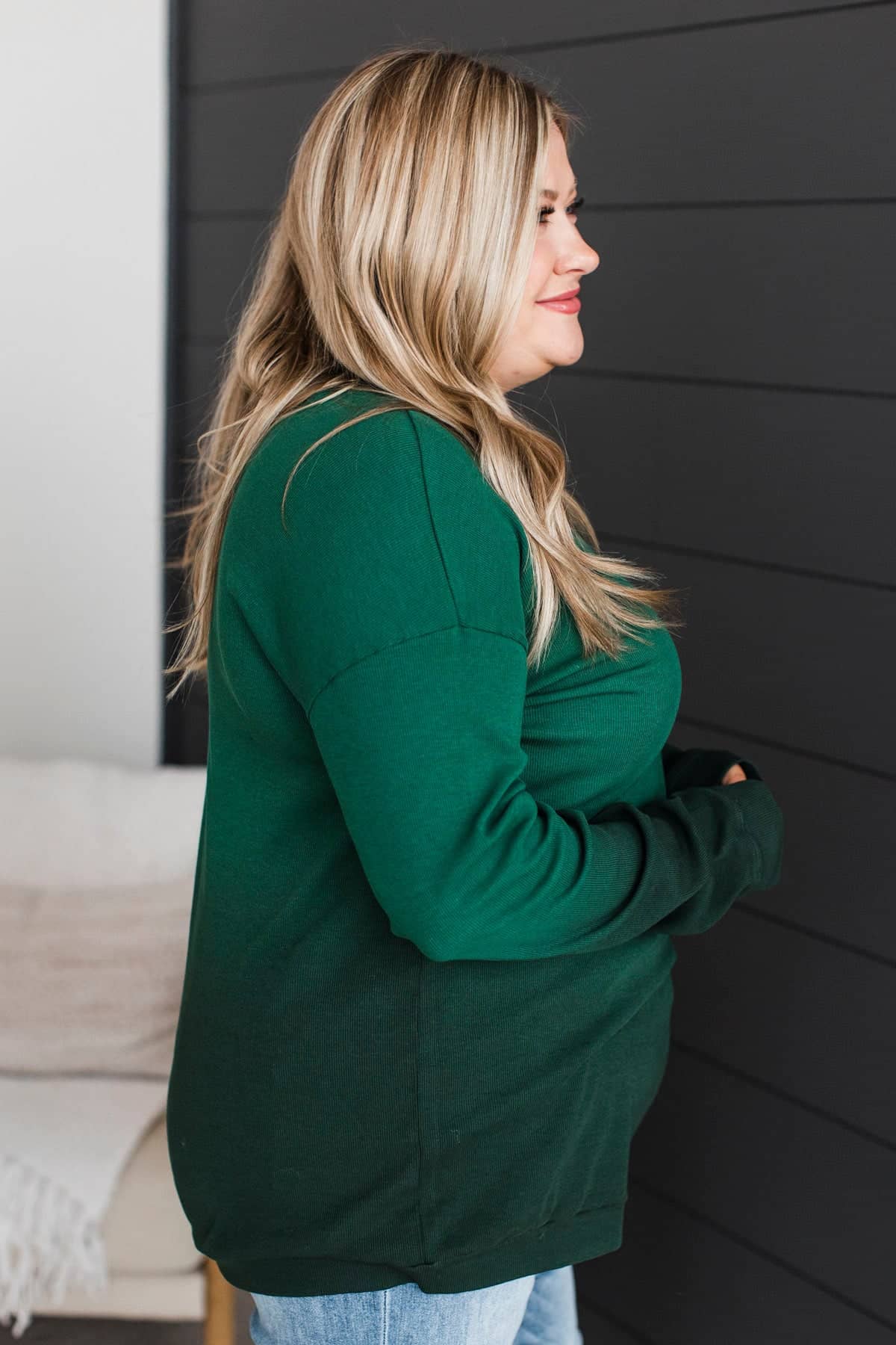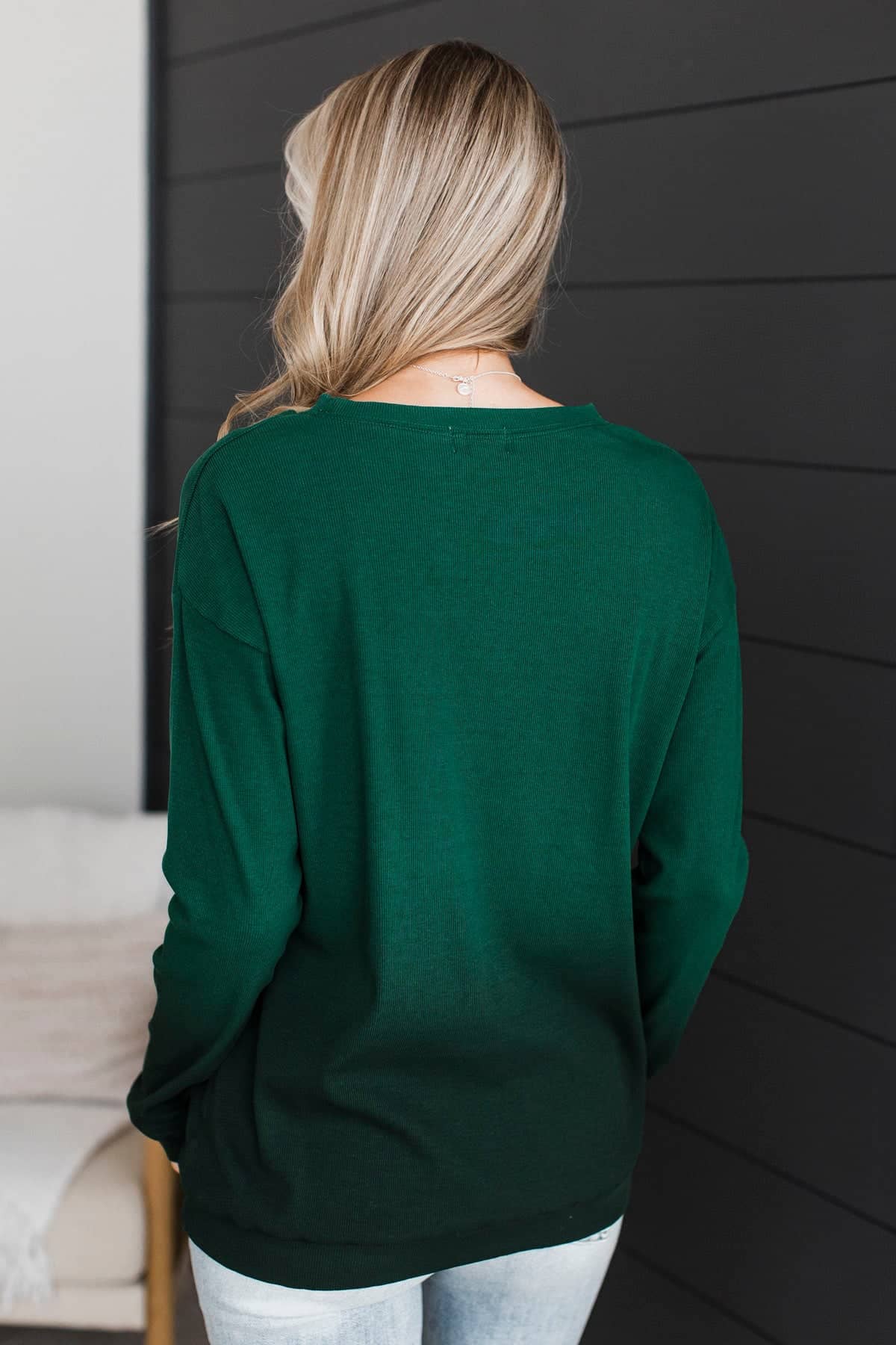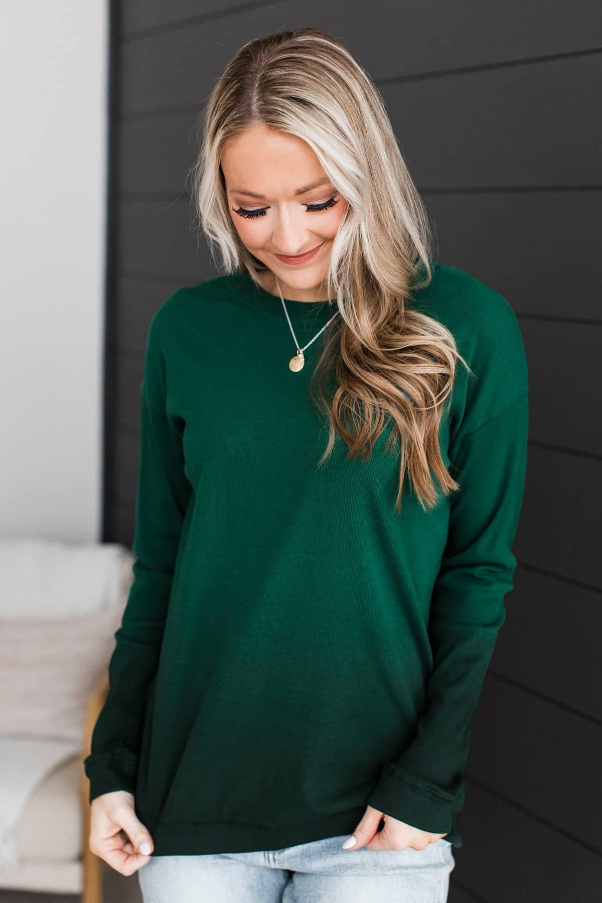 This gorgeous green ombre pullover is such a cute and casual staple piece for Winter! Pair with jeans or leggings and sneakers to stay extra comfy.