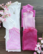 Bright Confidence Striped Tank Top- Ivory & Pink