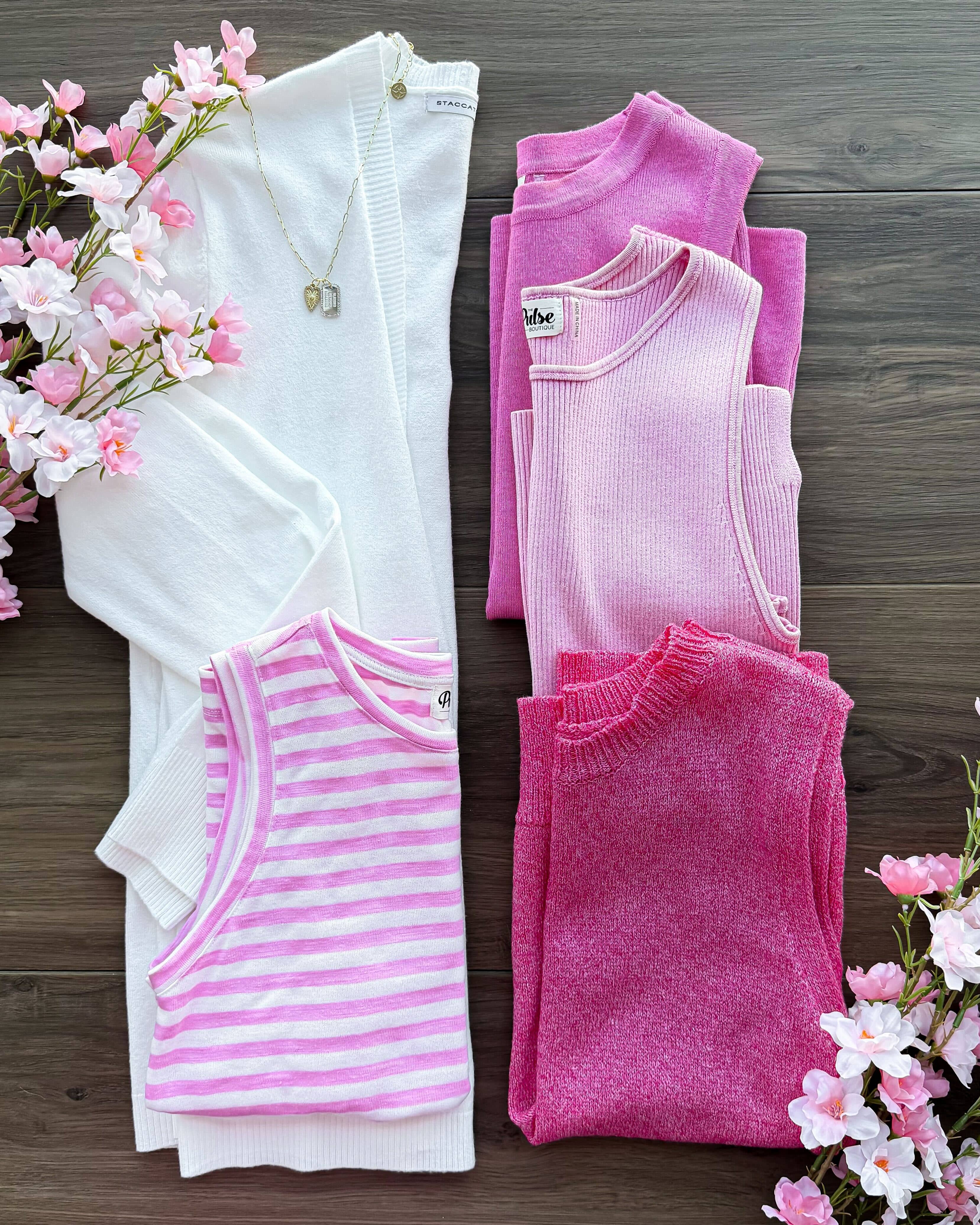 These pink tank tops are so fun and fresh for the Springtime! Pair with our "Move With Confidence Knit Cardigan- Ivory" for a cute & comfy everyday outfit.