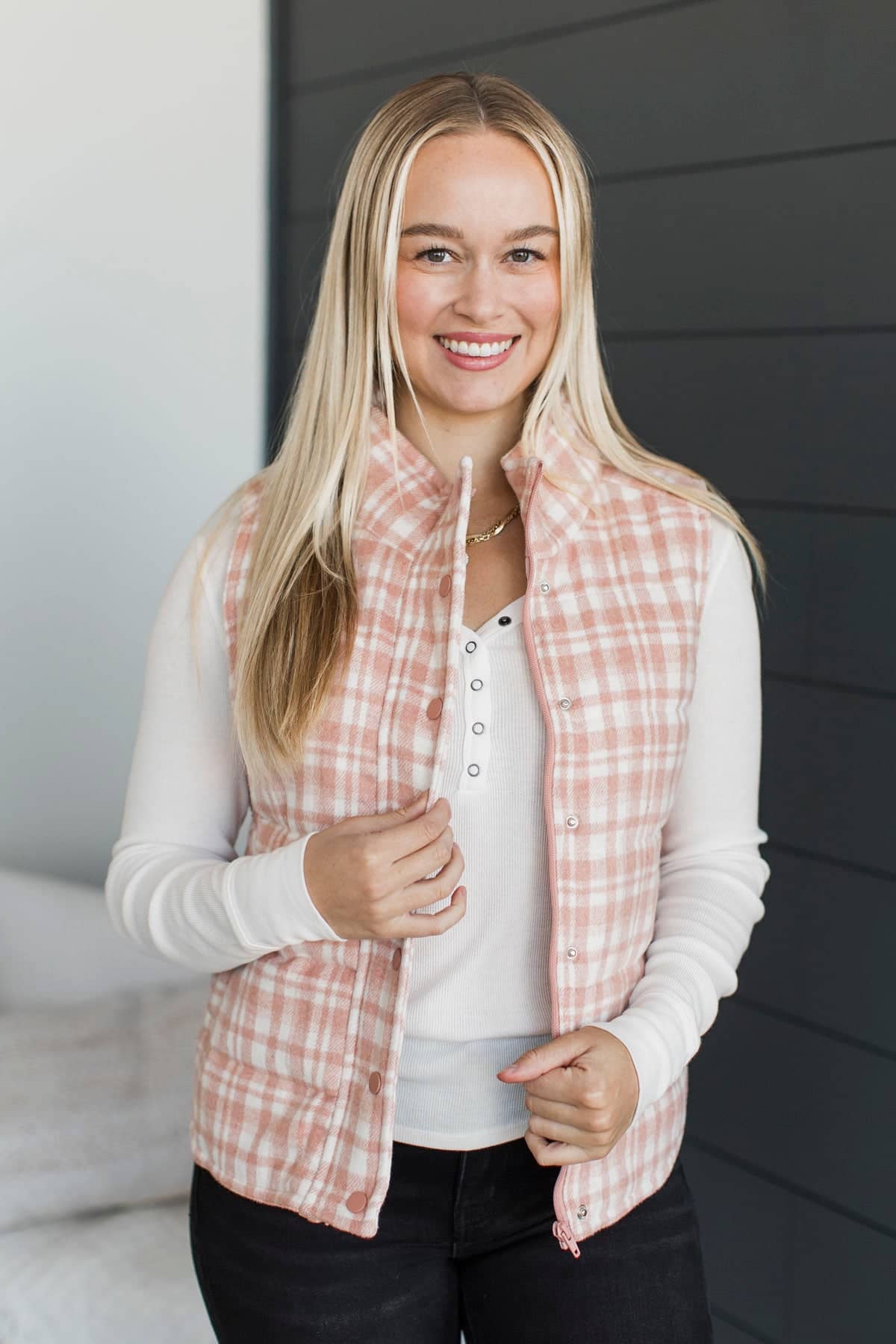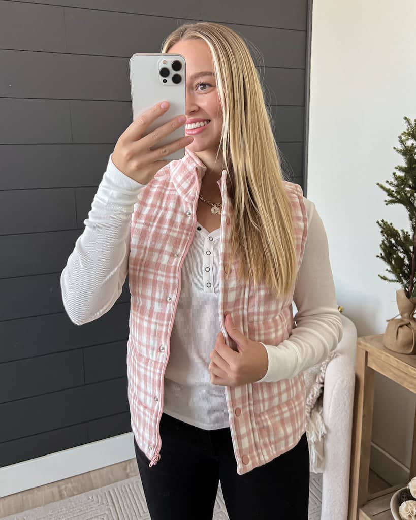 This plaid vest just hit the site along with our white henley long sleeve! Style with your favorite jeans and winter booties.
