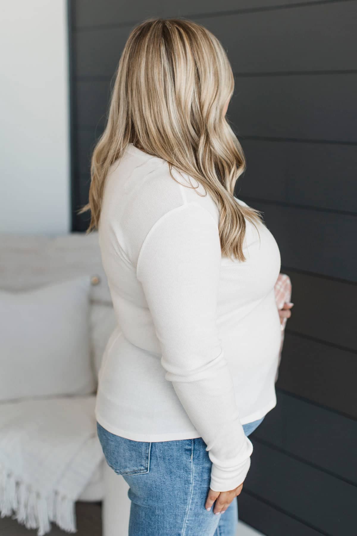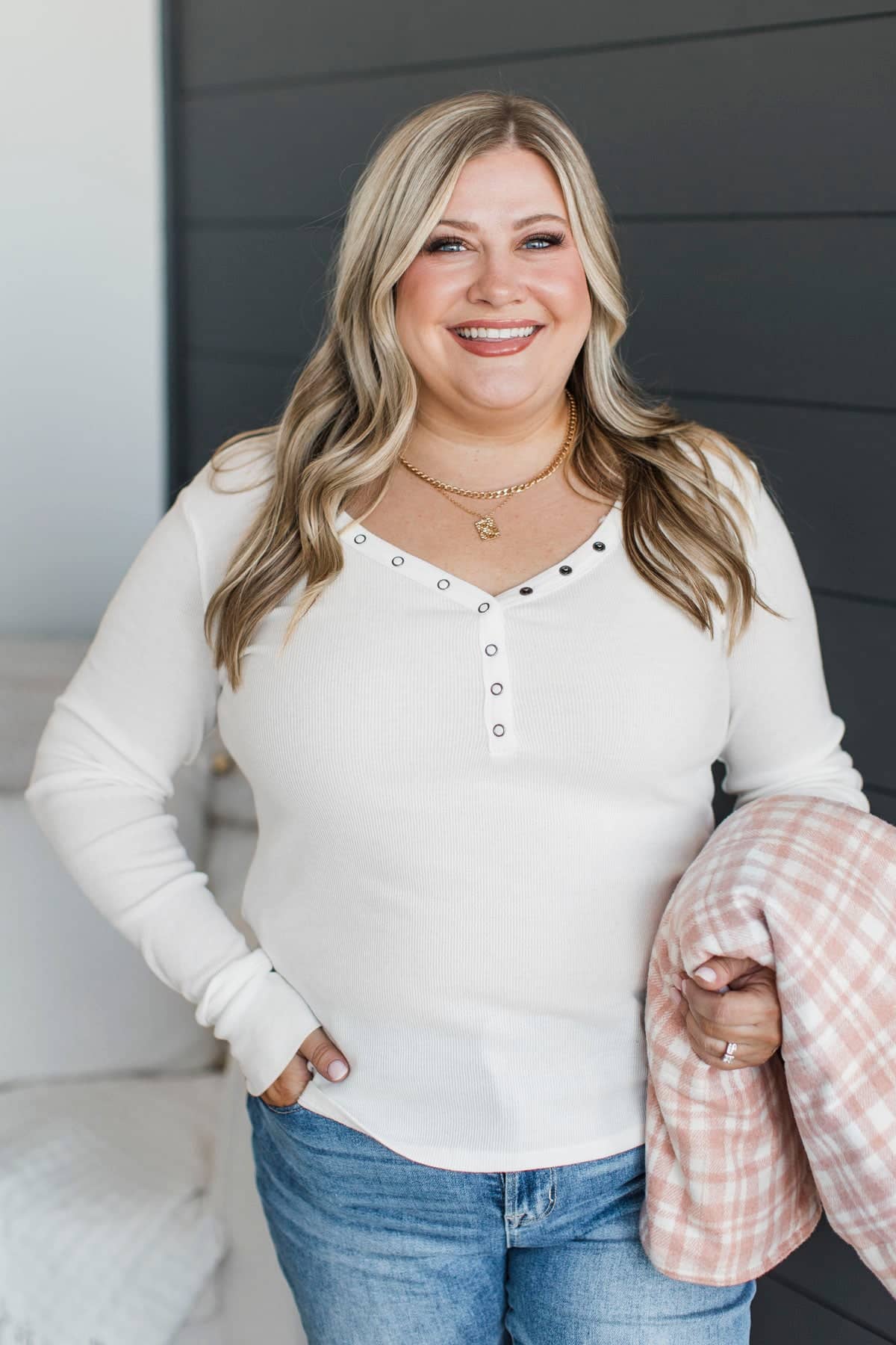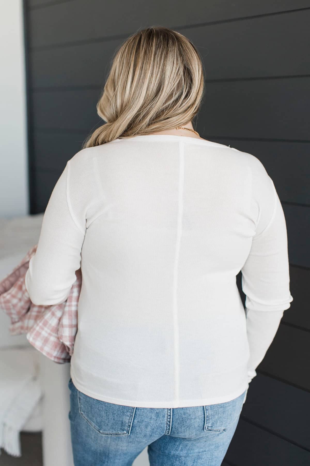 Everything In Time Long Sleeve V-Neck Top- Off-White