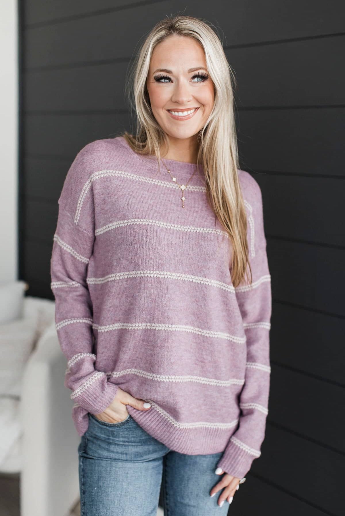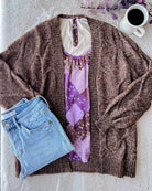 If you're a purple lover, this outfit is for you! Pair our new patchwork tank with our super-comfy brown cardigan for the cutest outfit!