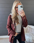 This button down hooded jacket is perfect to style with a henley and jeans for the perfect Fall transition outfit.