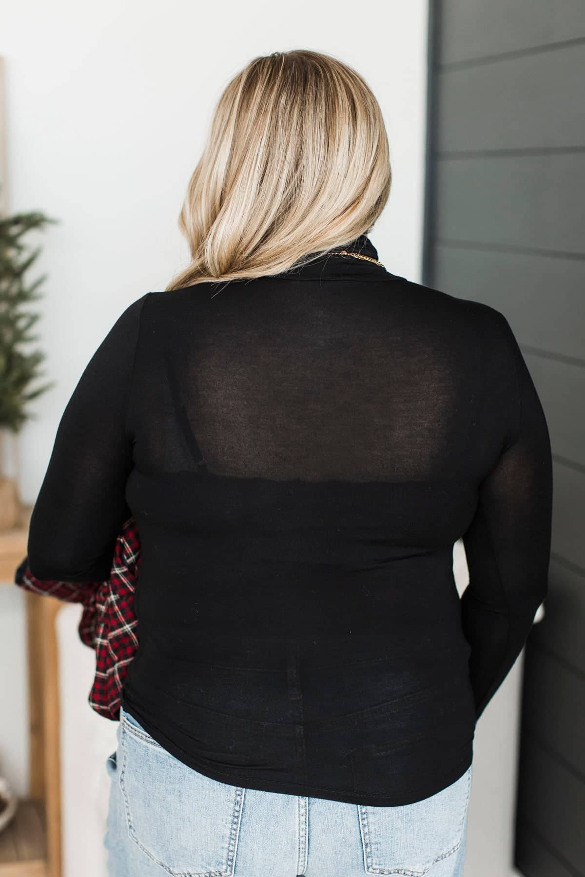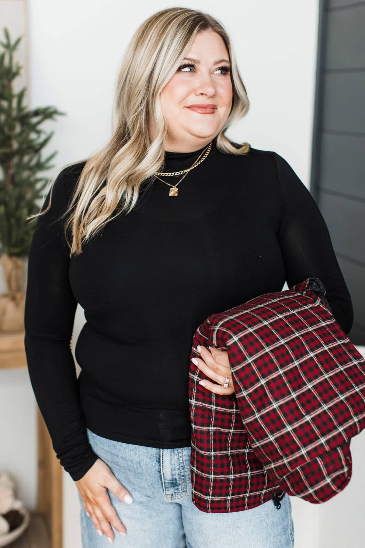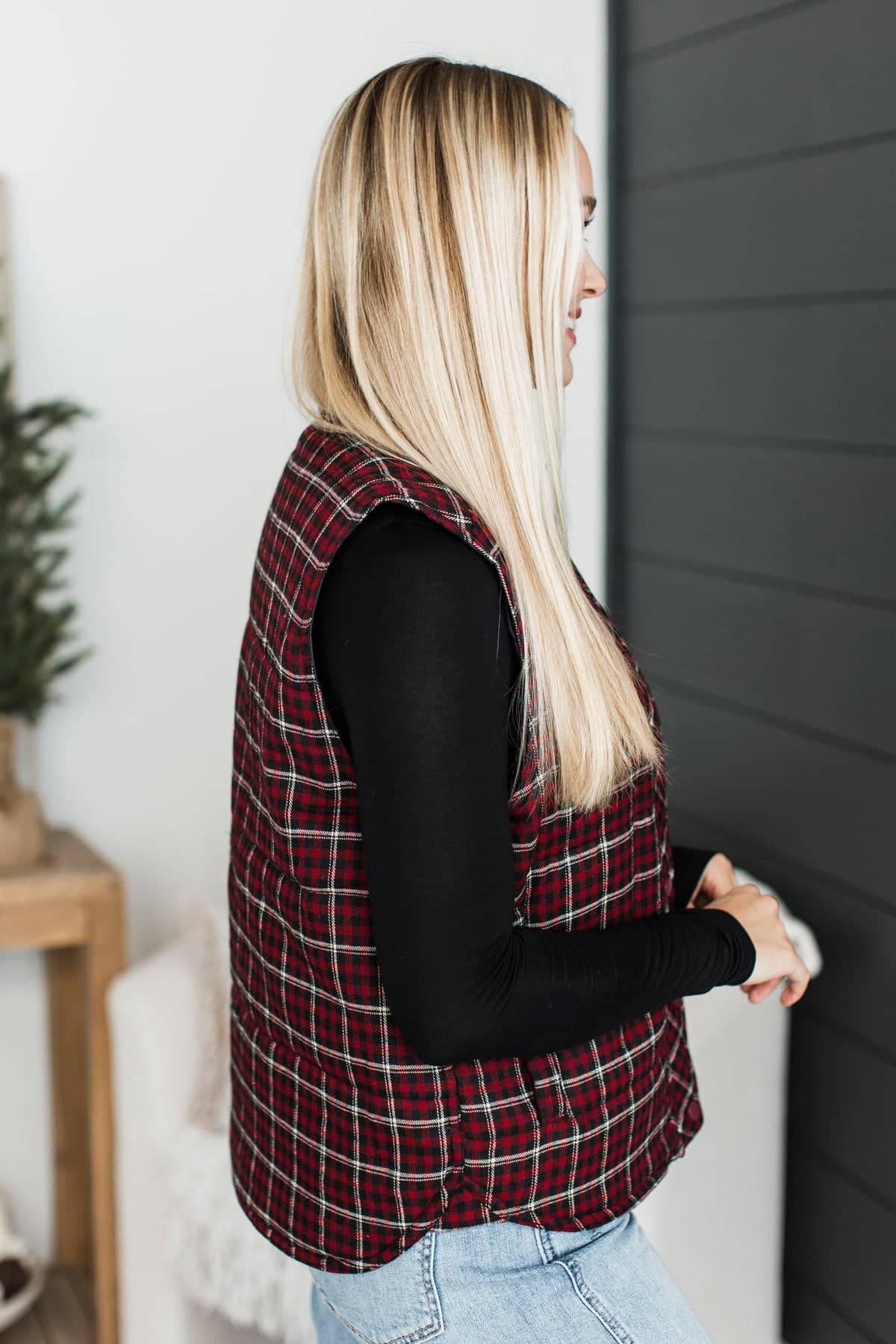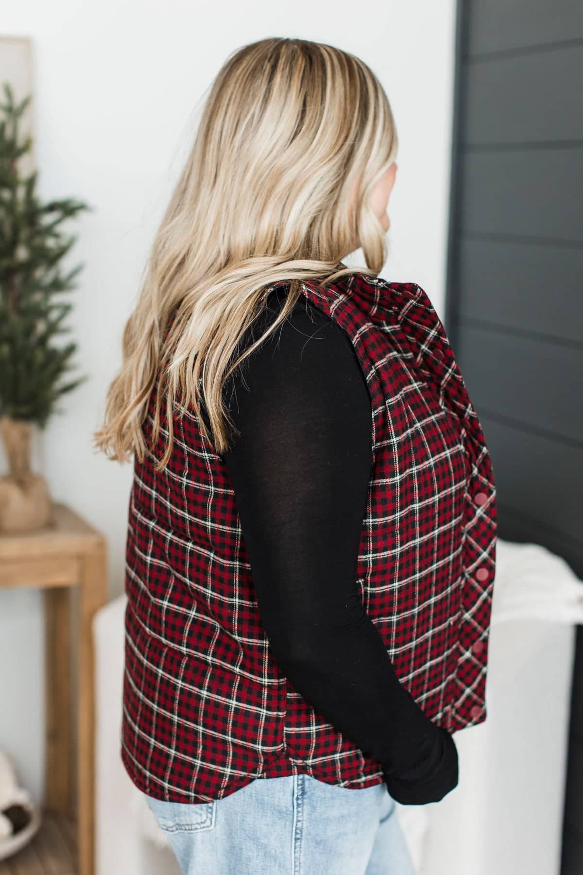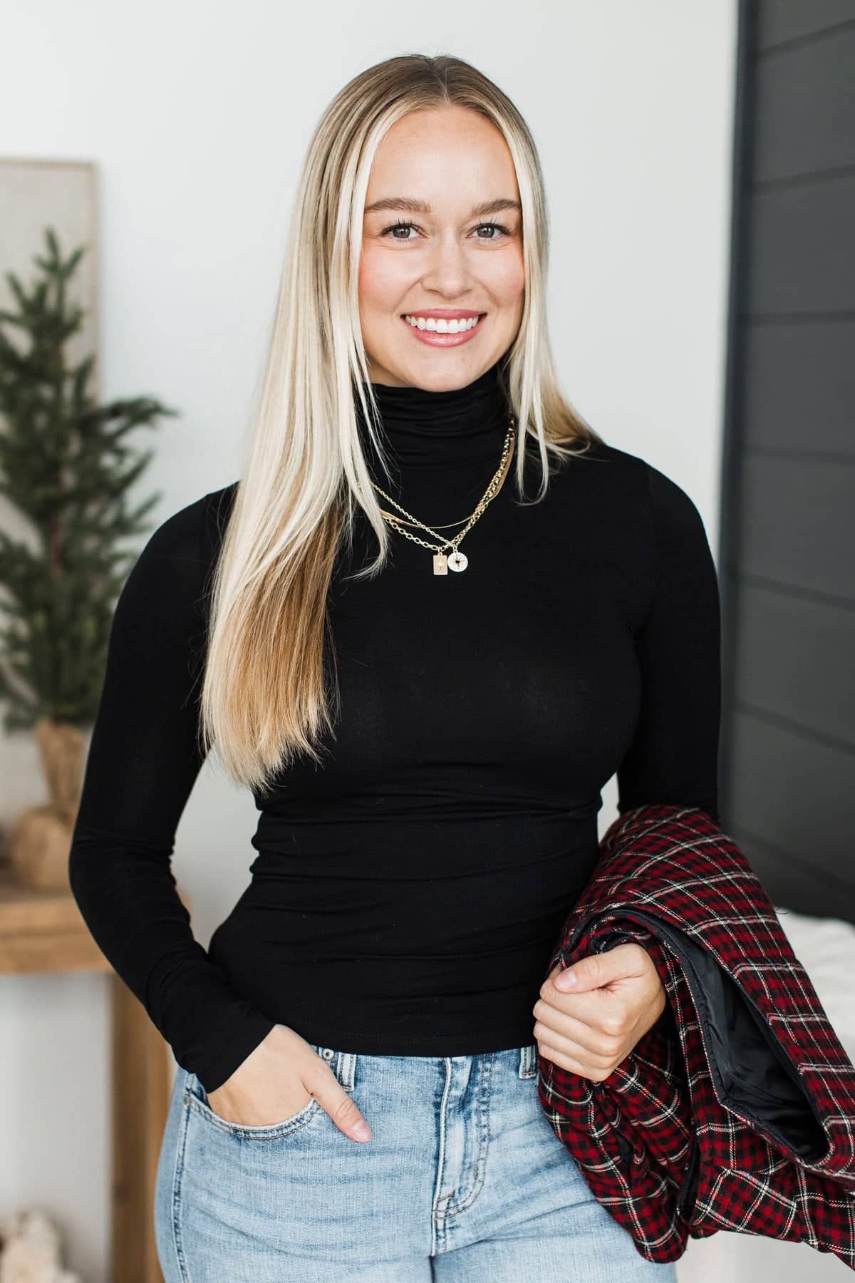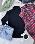 This turtleneck pairs so well with this cozy plaid puffer vest! Style with jeans and booties for the perfect Winter outfit.