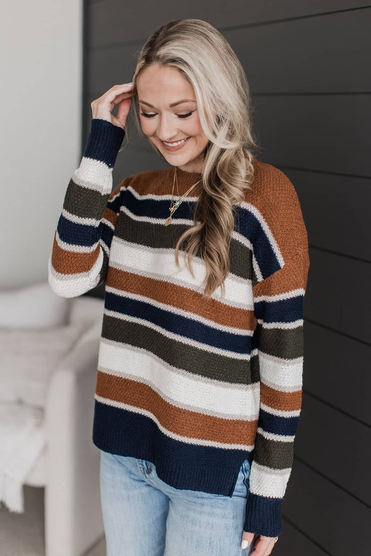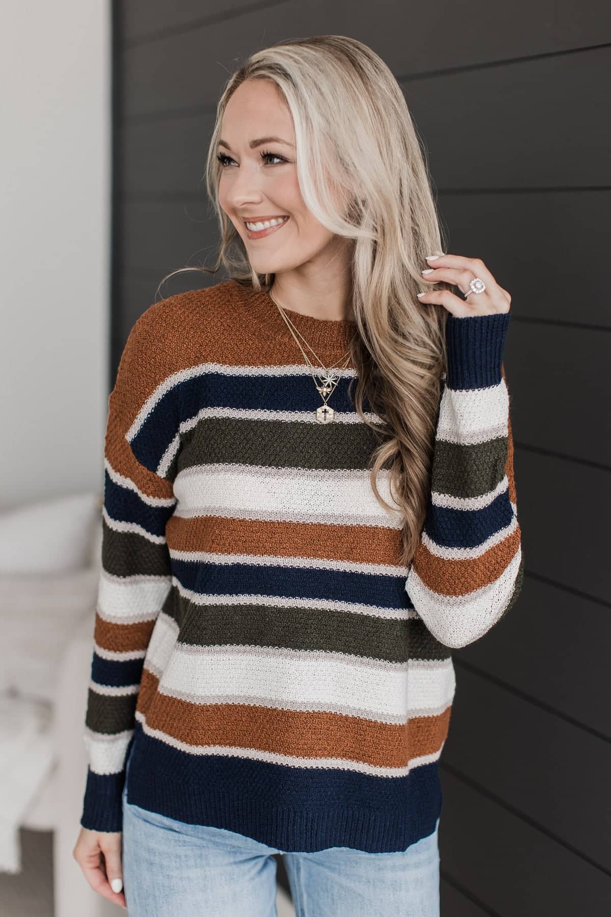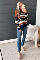 This striped sweater is such a comfy and chic staple piece for your Fall and Winter wardrobe! Pair with jeans and booties.