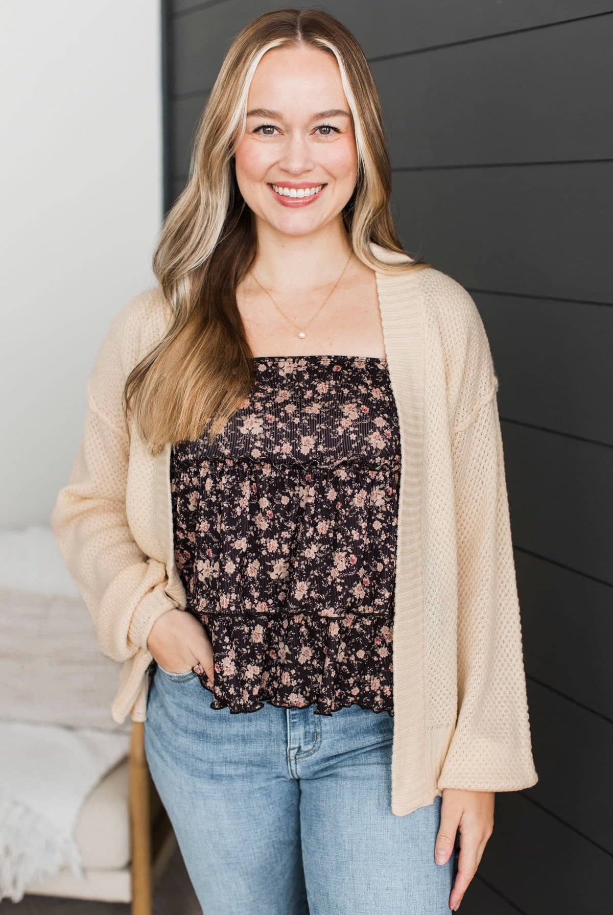 This cozy blue striped sweater is the ultimate style for everyday wear! You can pair with leggings or jeans for a cute and casual outfit.