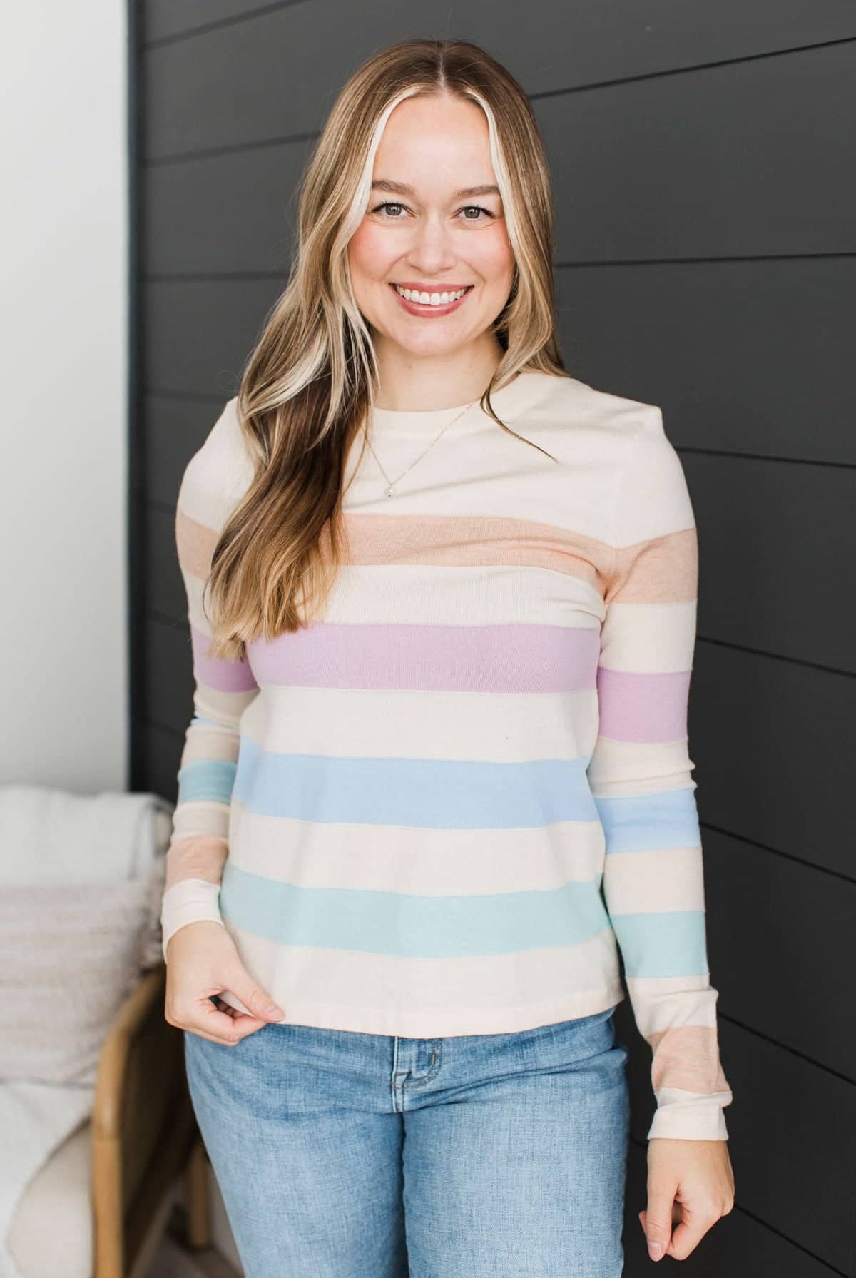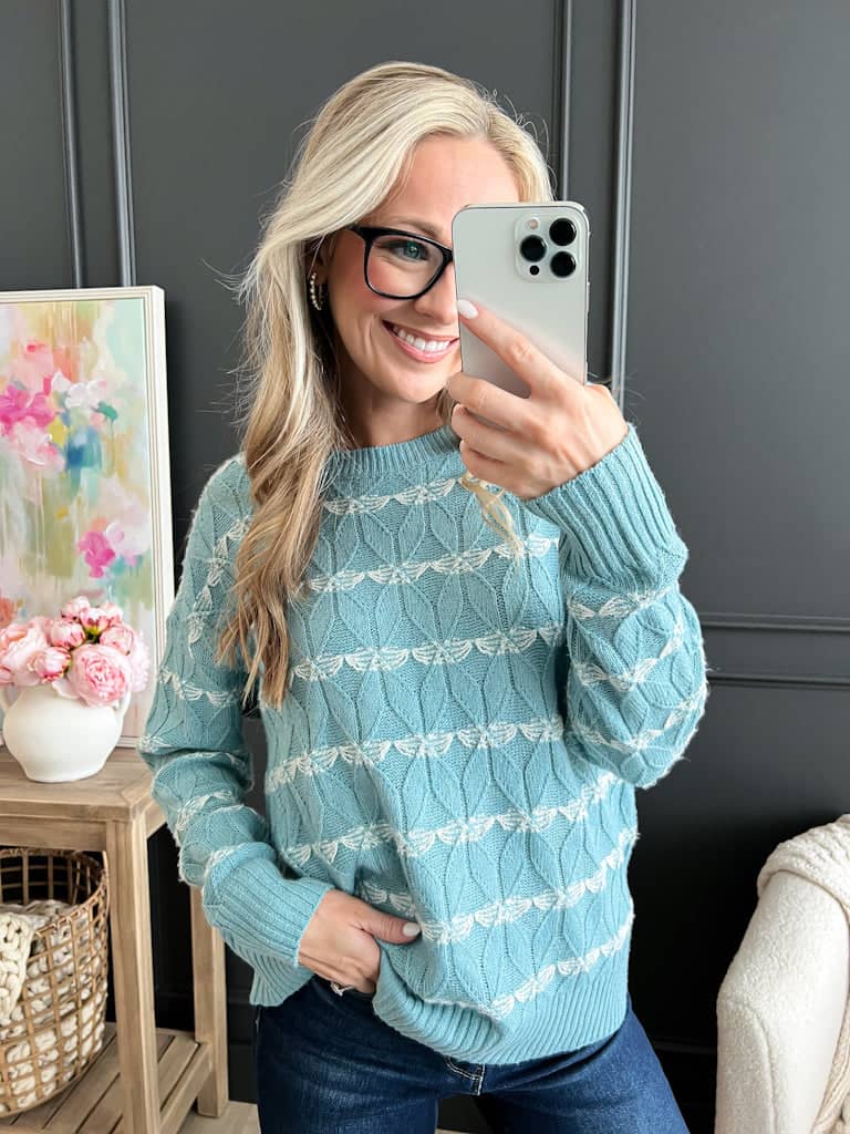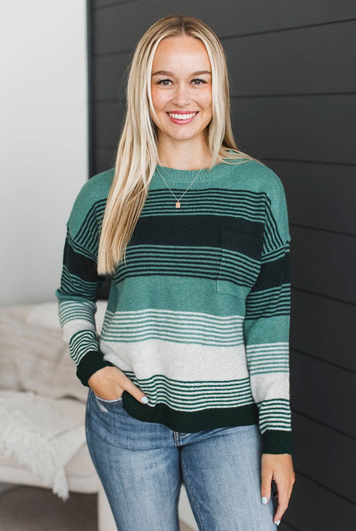 Show Me Off Striped Knit Sweater- Dusty Teal