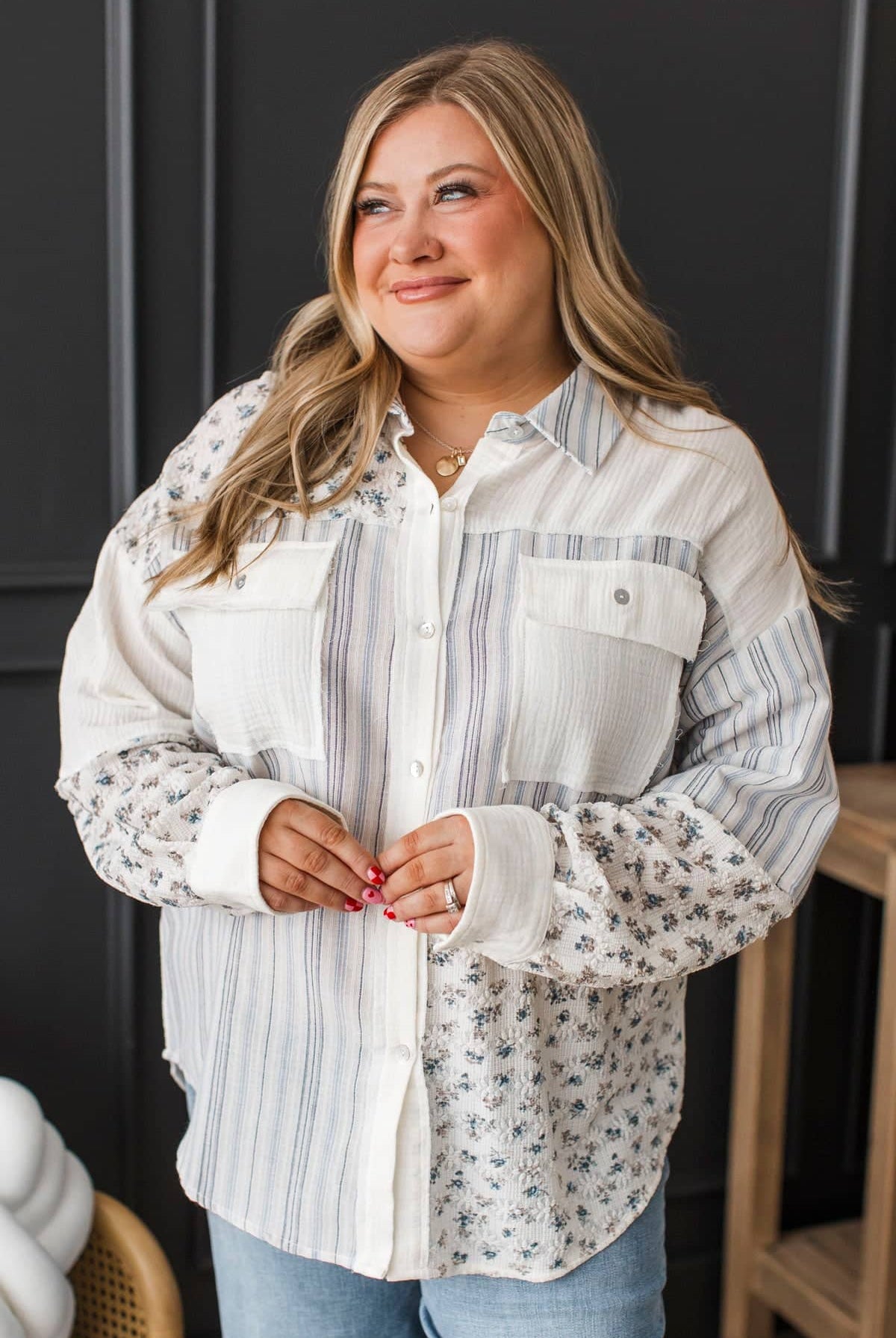 - Button up front with collar