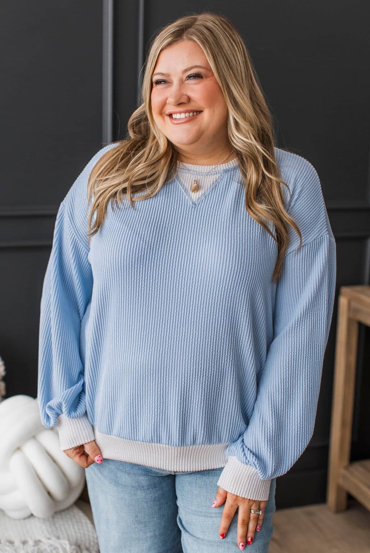 - Round neckline