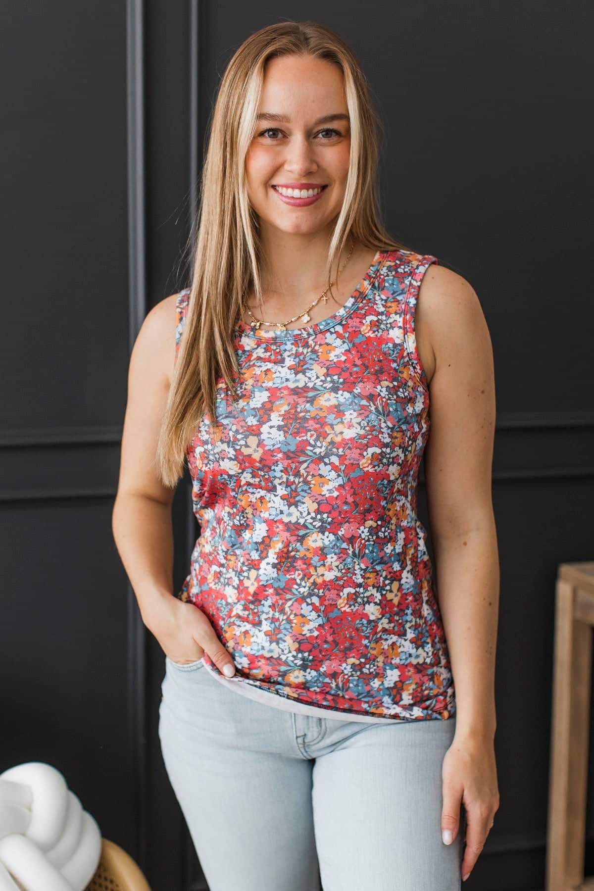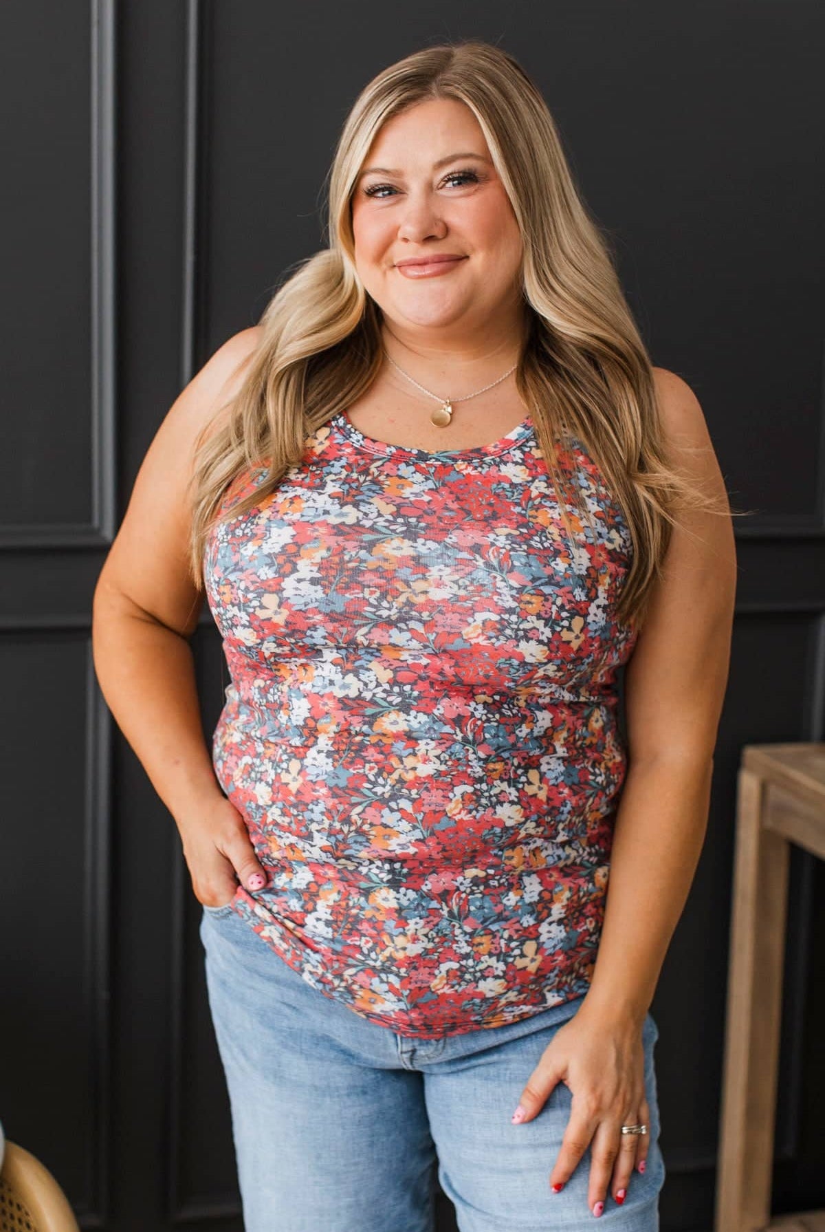 You are going to want this cute and colorful tank top in your closet for Spring! Pair with a denim jacket, cardigans and more.
