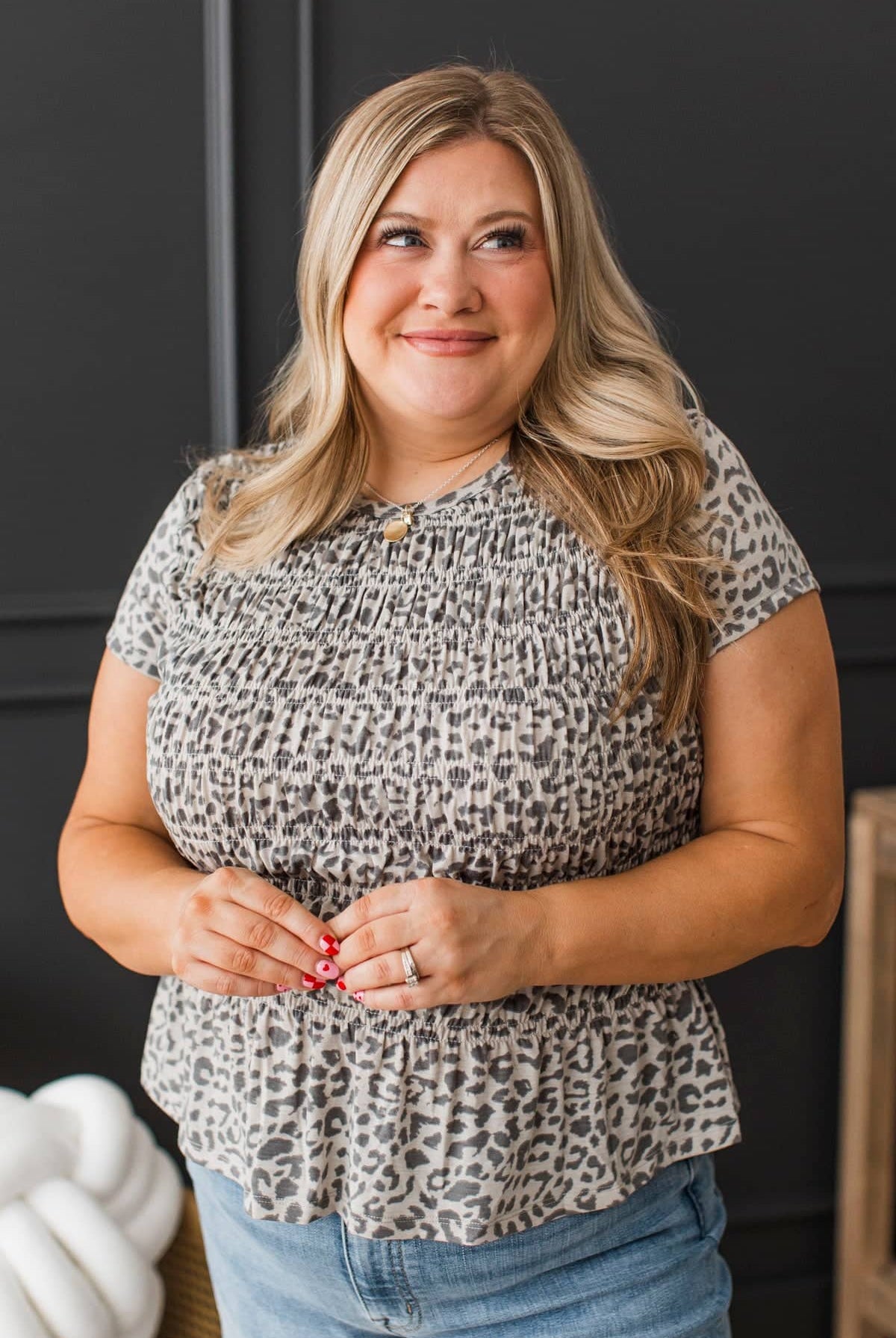 - Leah is modeling a size 13.