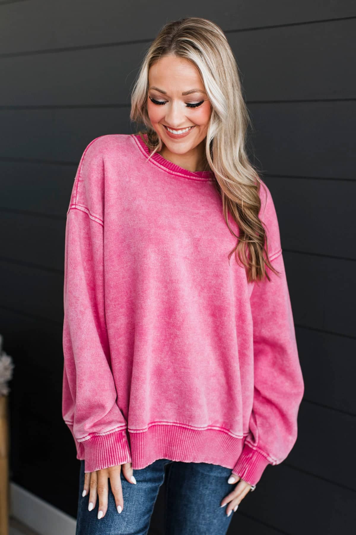 - Non-distressed body with some distressing on pockets